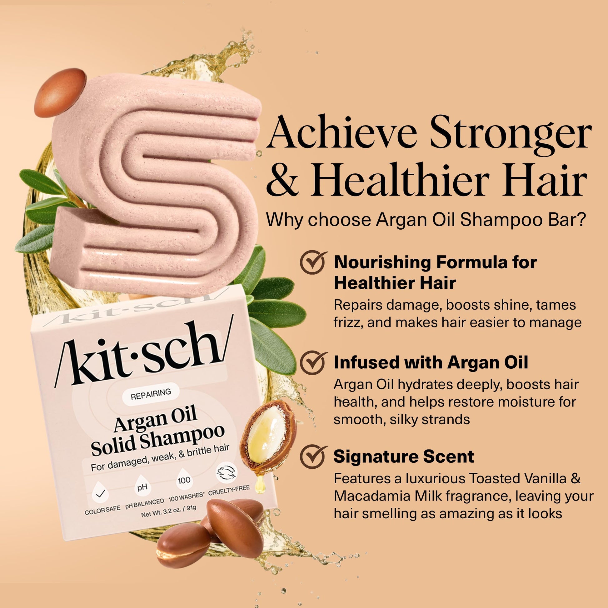 Kitsch Argan Oil Shampoo Bar - Repairing Solid Hair Shampoo for Women and Men - Strengthening, Moisturizing Hair Care - Silicone, Paraben & Sulfate Free, Vegan, Made in USA - 3.2 oz