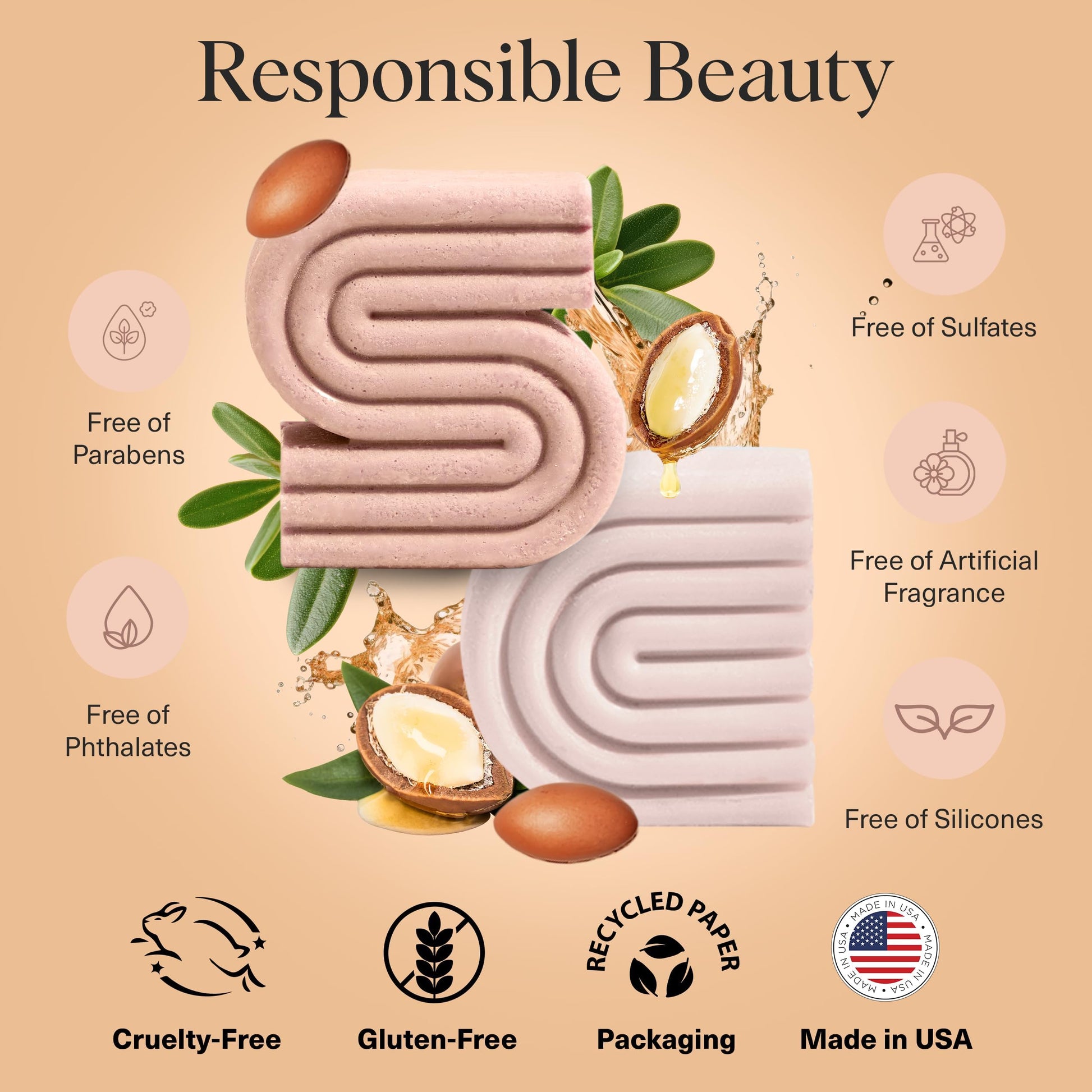 - LIGHTWEIGHT HYDRATION WITH ARGAN OIL: Formulated with nourishing, antioxidant-rich argan oil—often called "liquid gold"—this shampoo bar deeply moisturizes without weighing hair down. It restores softness, enhances shine, and revives dull strands, making it ideal for everyday use on dry, brittle, fine, or color-treated hair.