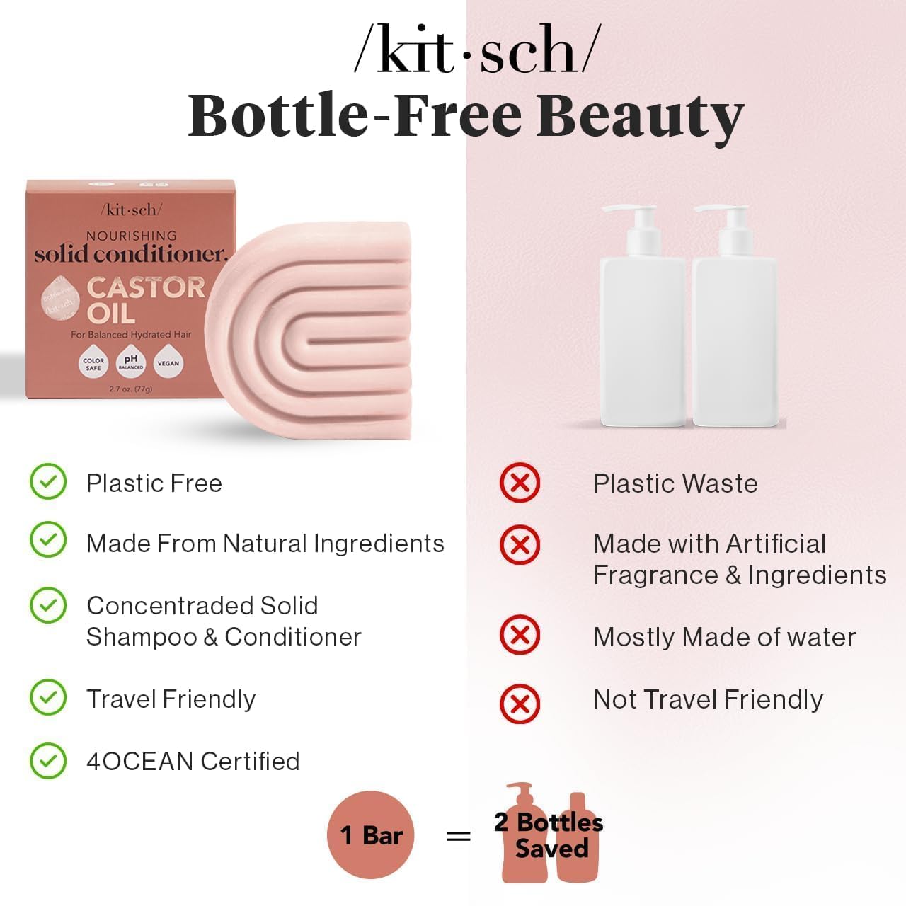 Kitsch Castor Oil Conditioner Bar Soap - Hydrating & Moisturizing Hair Care - Organic Castor Oil Conditioner for Hair Growth & Scalp Nourishment - Silicone & Paraben-Free, Vegan, Made in USA - 2.7oz