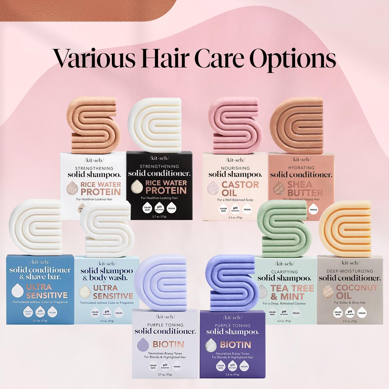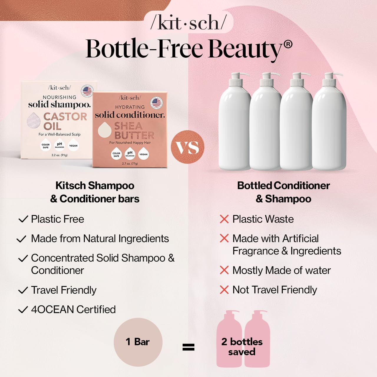 Kitsch Castor Oil Shampoo & Shea Butter Conditioner Bar – Shampoo and Conditioner Set - Hydrating & Moisturizing Bar Soap - Free of Paraben, Silicone, Sulfate - Made in USA - 2pc Set