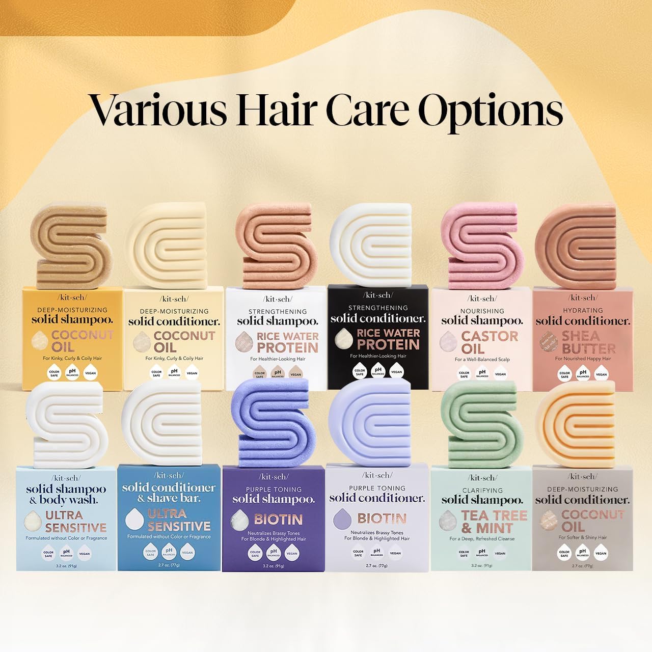 Kitsch Coconut Oil Shampoo and Conditioner Set – Deep Moisturizing Shampoo and Conditioner Bar for Dry Damaged Hair – Hydrating Solid Bars for Curly, Coily & Color Treated Hair – Made in USA