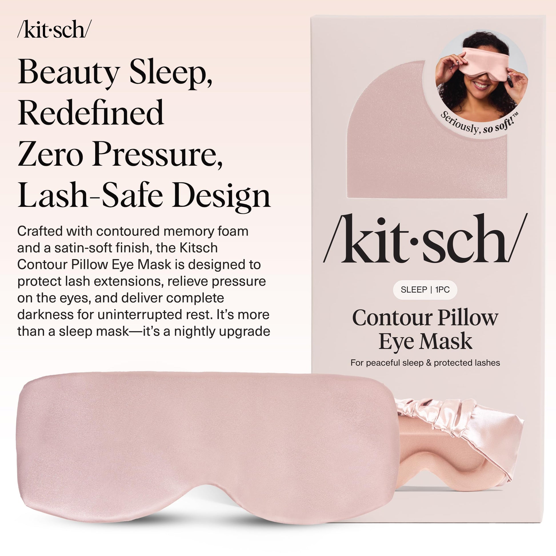 - LASH PROTECTION: The Kitsch Contour Pillow Eye Mask is specially shaped to lift away from lashes and extensions, helping preserve curl, shape, and retention.