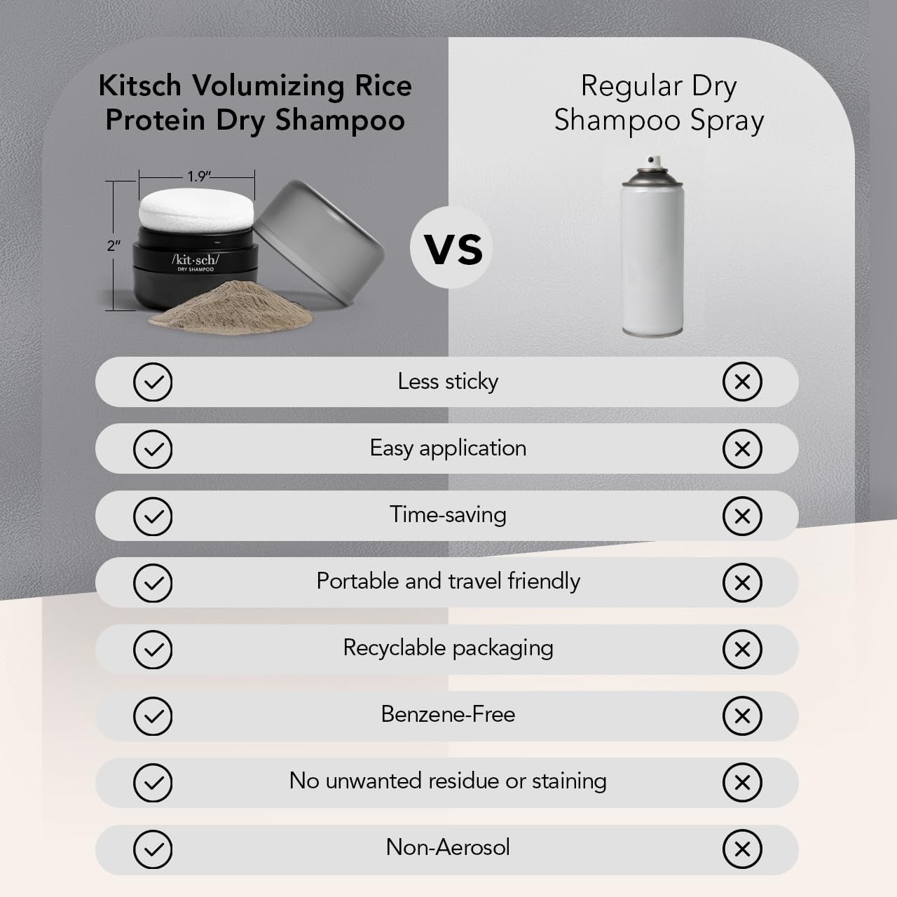 - REVIVE YOUR LOOK ANYWHERE, ANYTIME: Elevate your style effortlessly with our ingredient-rich tinted dry shampoo hair powder. Designed for convenience, it extends the life of your hairstyle from 3 to 6 days beyond wash day, ensuring freshness and volume on the go. Experience instant lift and revitalized locks with Kitsch Volumizing Travel Size Dry Shampoo Powder—it’s your secret weapon for a fresh, voluminous look without the need for water.