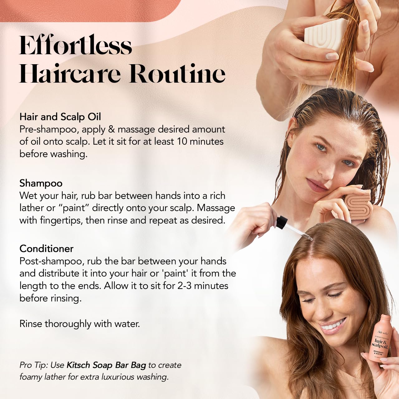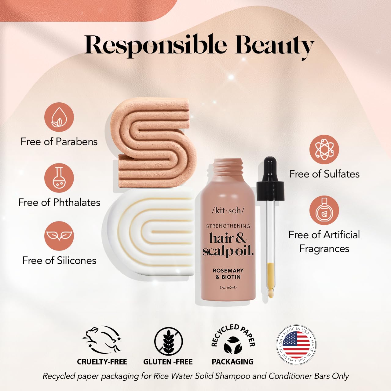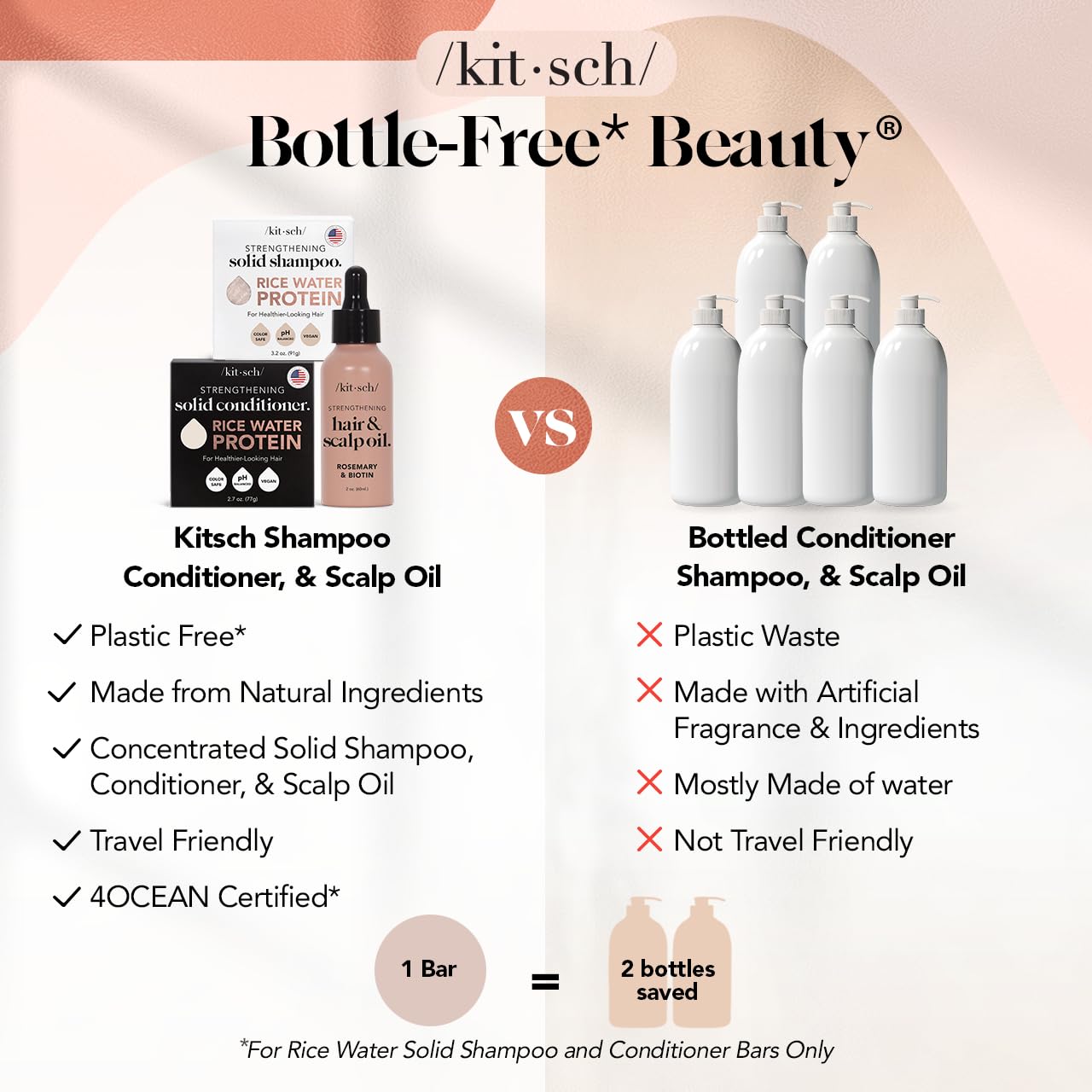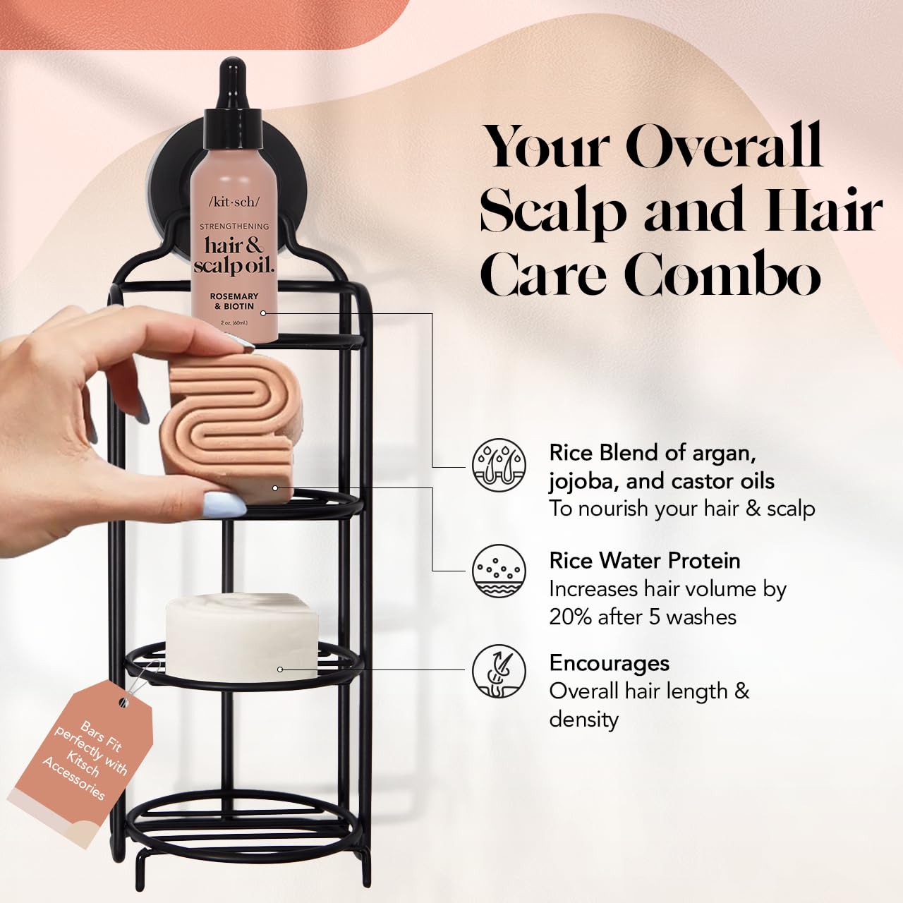 Kitsch Rice Water Shampoo and Conditioner Set + Pre-Wash Scalp Serum with Rosemary and Biotin – Shampoo and Conditioner Bar for Hair Growth & Scalp Nourishment – Hair Care Bundle – 3pc Set