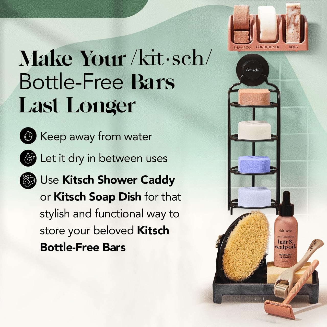 Kitsch Rosemary & Biotin Shampoo and Conditioner Set for Hair Growth - Strengthening, Thickening & Volumizing Shampoo and Conditioner Bar - Paraben, Sulfate & Silicone Free - Made in USA - 2 pack