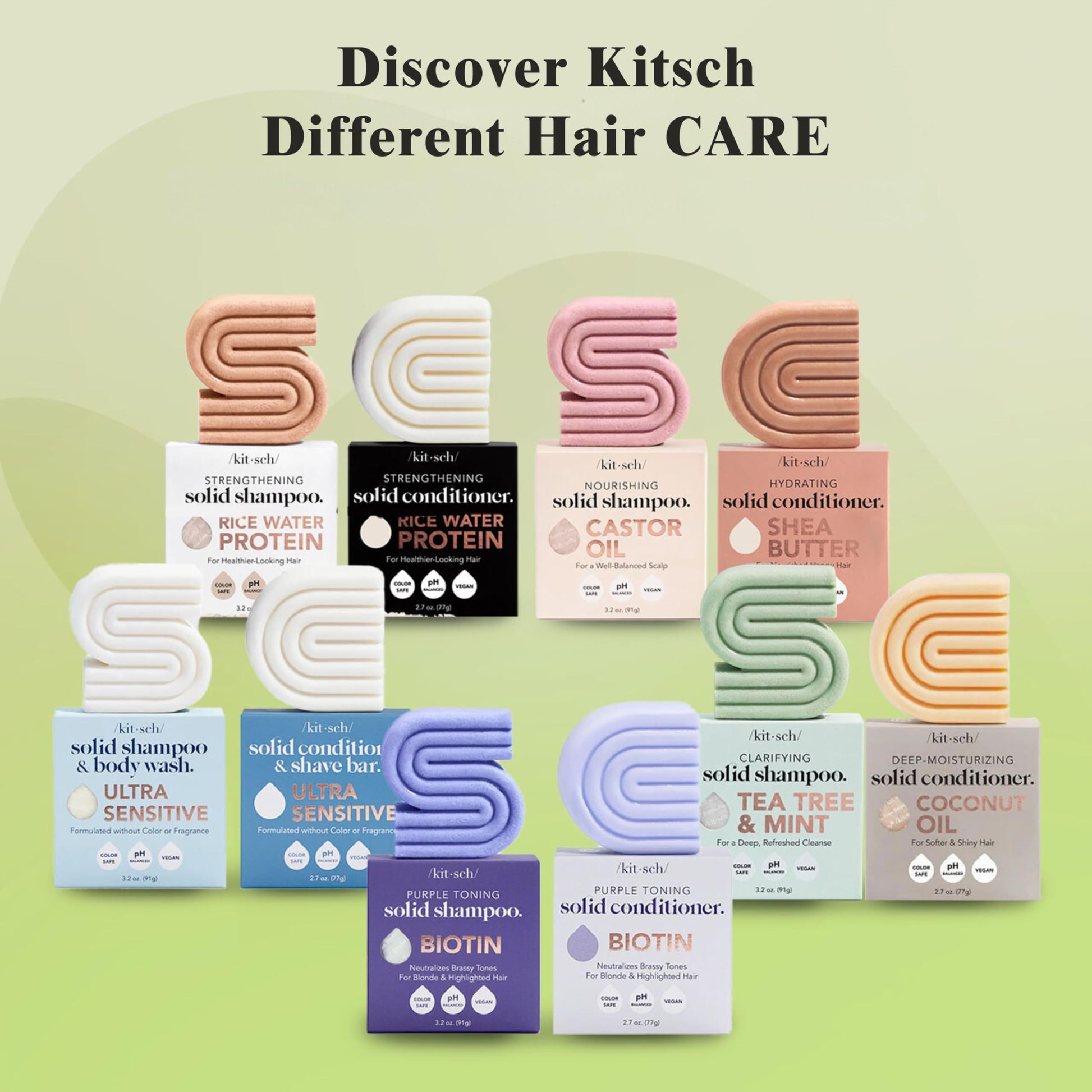 Kitsch Tea Tree Shampoo and Conditioner Set – Anti Dandruff Shampoo Bar & Conditioner Bar - Hair Care for All Hair Types - Free of Paraben, Sulfate & Silicone - Made in USA - 2 pcs
