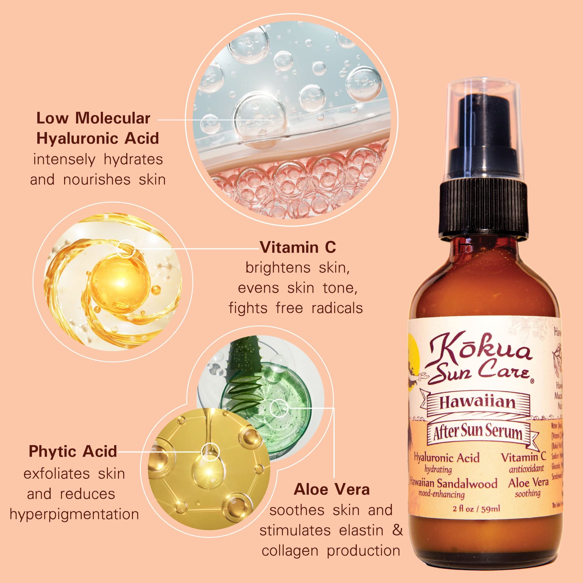 Kokua Sun Care After Sun Serum with Aloe Vera | 2oz | Hyaluronic Acid & Sandalwood | Vitiman C | After Sun Lotion, Aleo Vera Gel For Face, Sunburn Relief, Beach Vacation Essentials, Travel Size Lotion