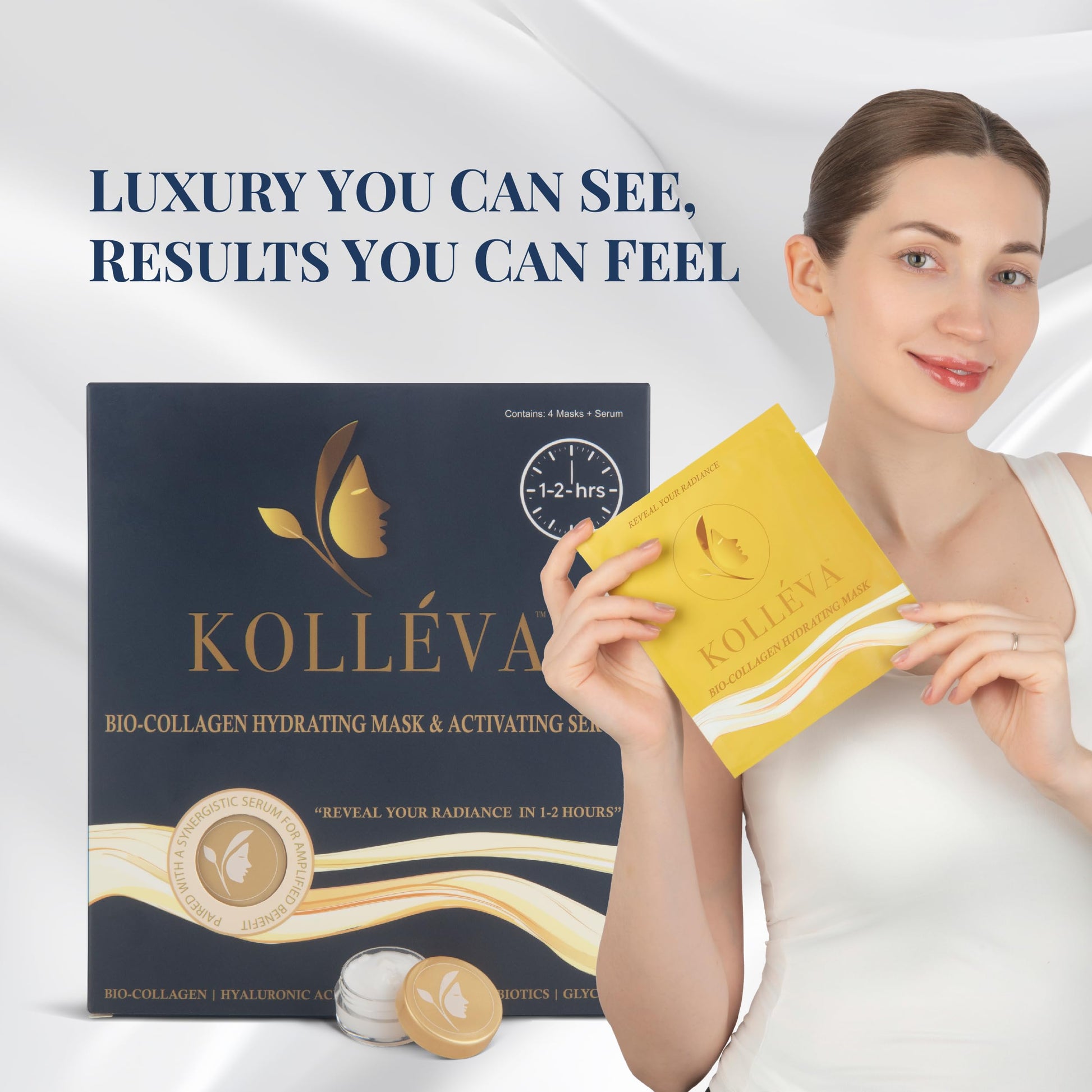Kolléva Collagen Hydrogel Masks –Instant 2-Hour Glow | 4 Clinical Level Masks | U.S. Skincare Innovation