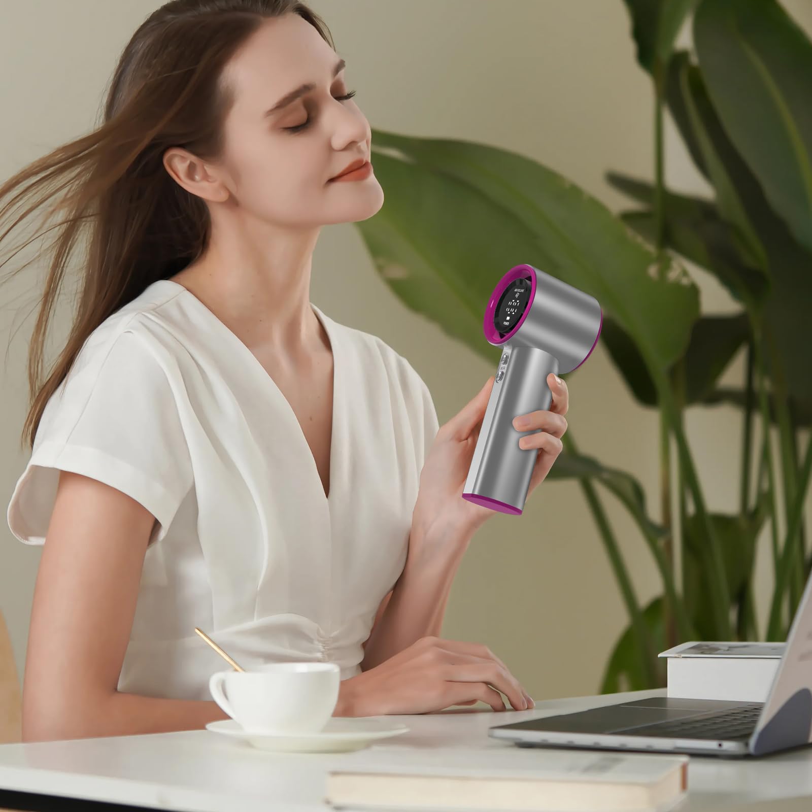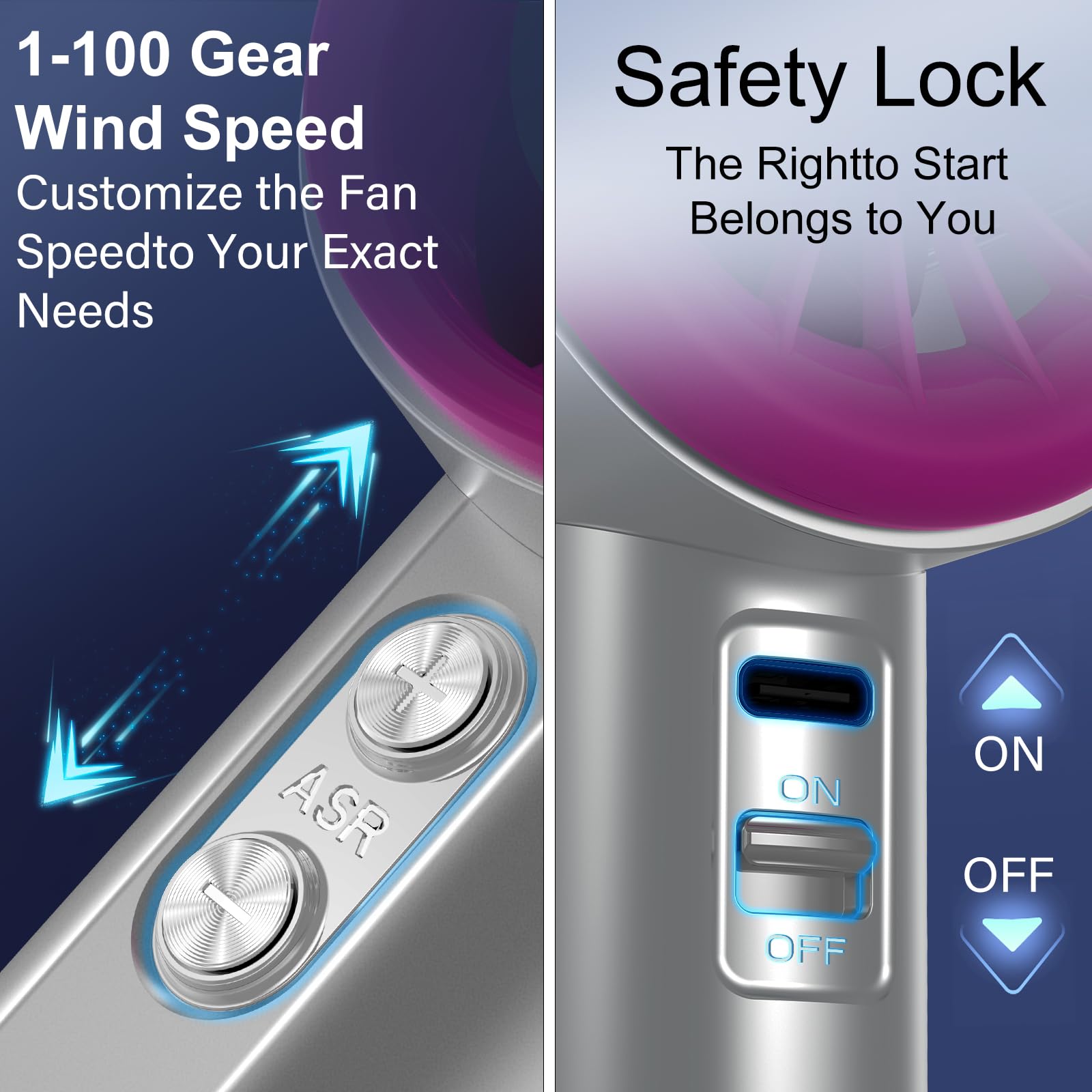 KOQQQ Portable Handheld Fan, Speed (1-100) Adjustable Turbo Personal, 4000mAh Battery Rechargeable Cooling Fan, Digital Display, Gifts for Women Men Travel/Camping/Outdoor (Iron/Fuchsia)