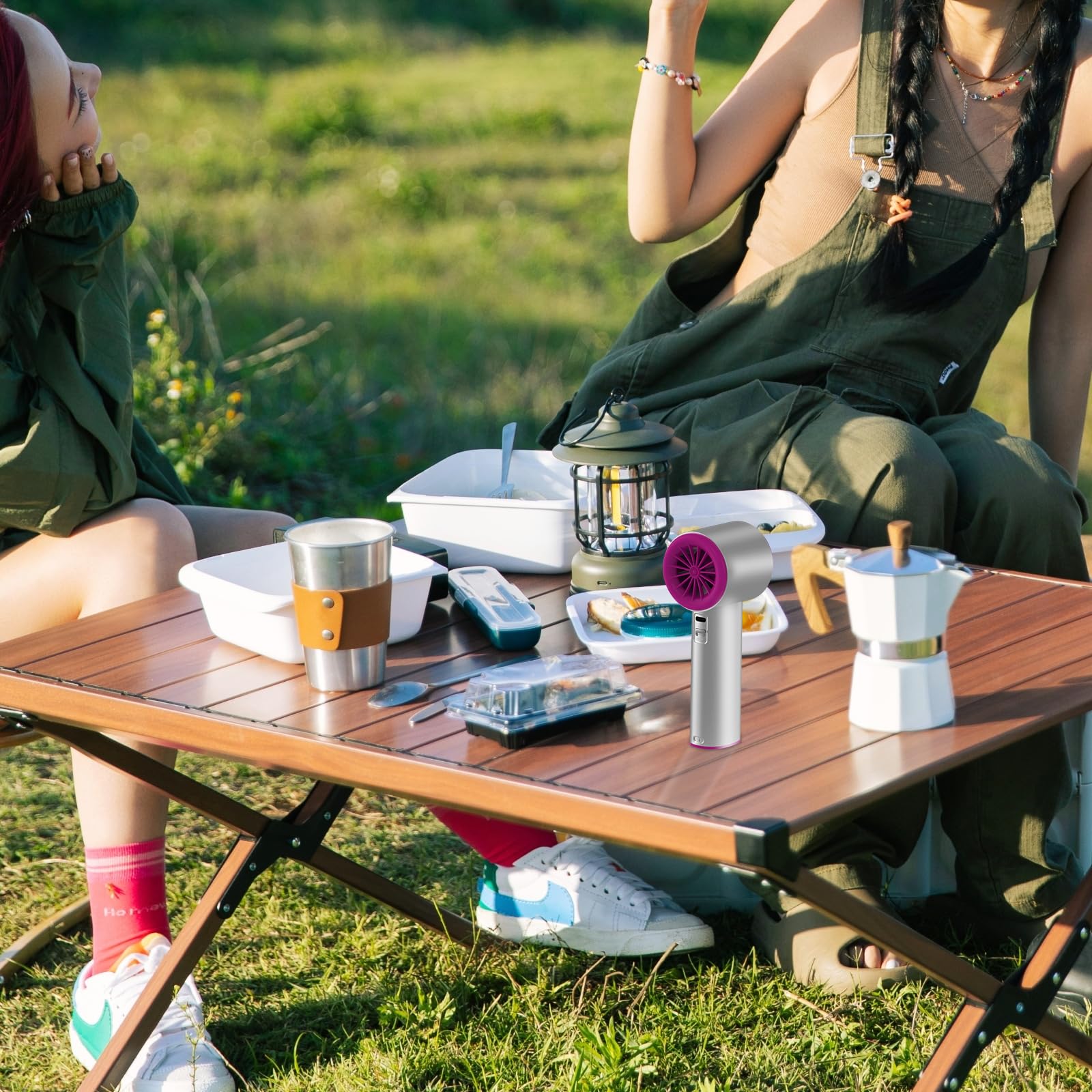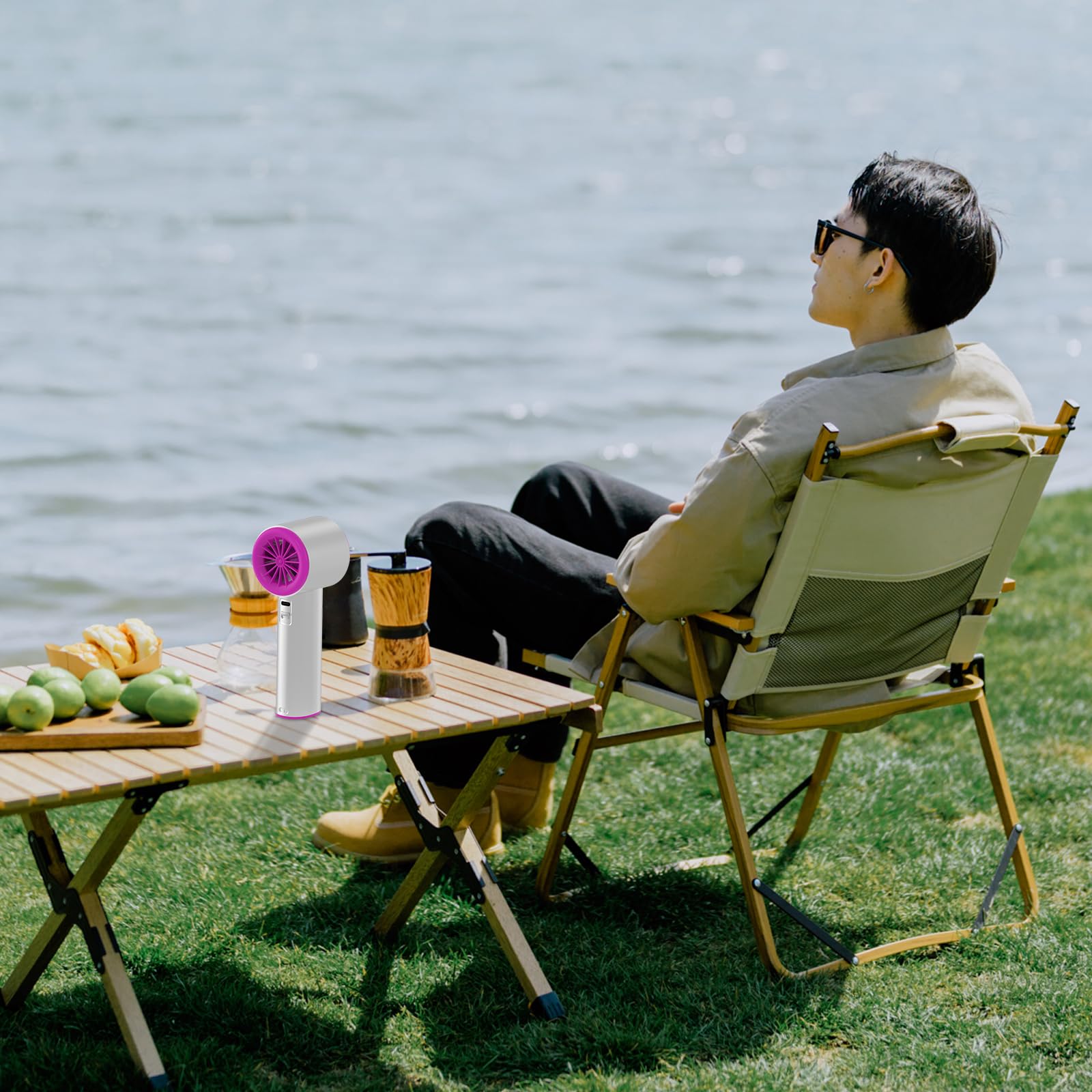 - Technology Design & Cold Wind Delivery: The travel fan utilizes a turbine structure with a powerful motor to quickly compress and cool down the hot air that is sucked in, turning it into the cold air that blows out. This can quickly cool you down in hot weather. The body of this turbo fan is made of ABS material and features precise plastic spray coating technology. Its smooth cylindrical design provides an excellent tactile sensation feeling