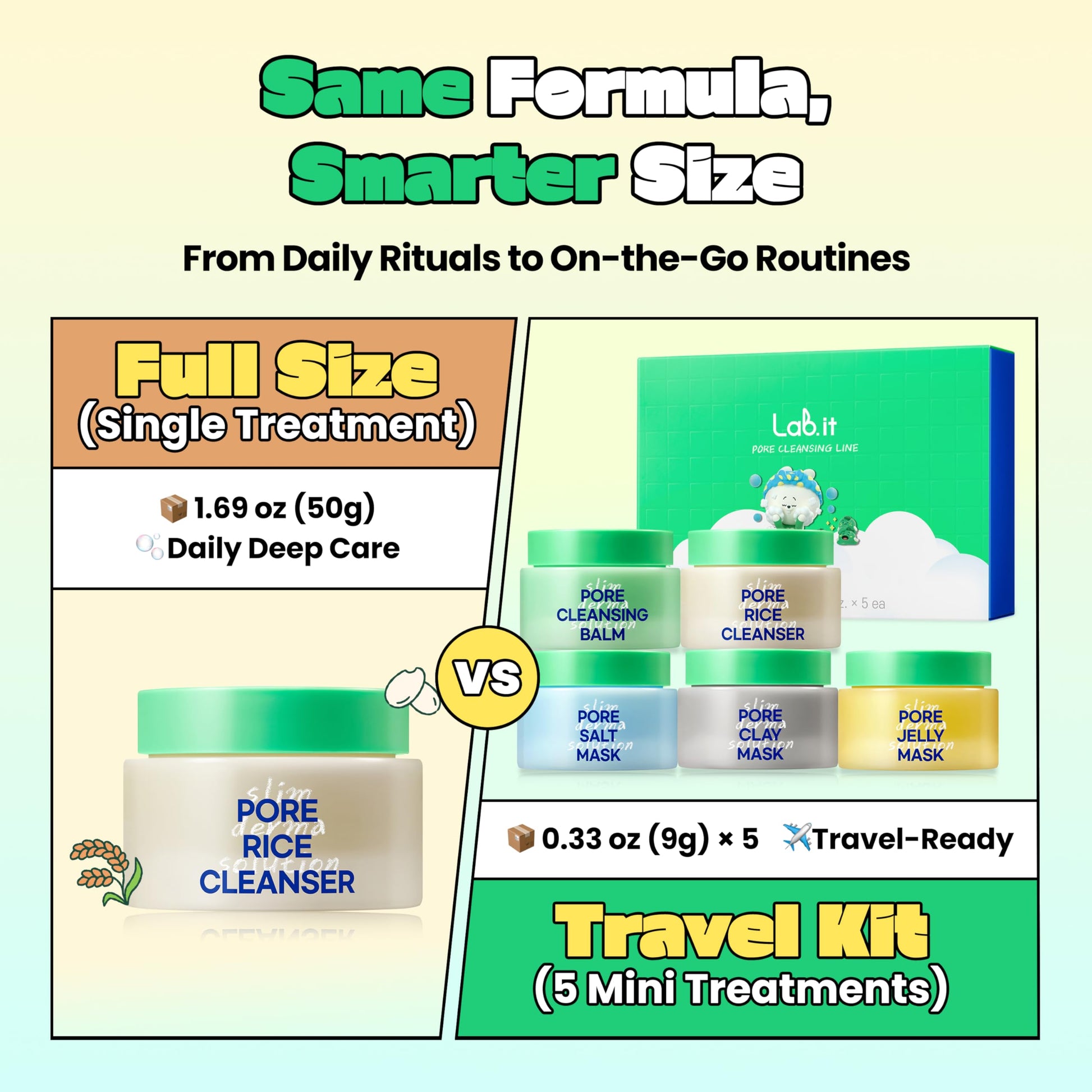 Lab.it Pore Cleansing Travel Kit – Korean Skincare Gift Set for Teens, Girls & Women, Face Cleanser & Mask Kit, Pore Care & Oil Control, Sensitive Skin-Friendly, Under 10 dollors Skincare, Travel-Size