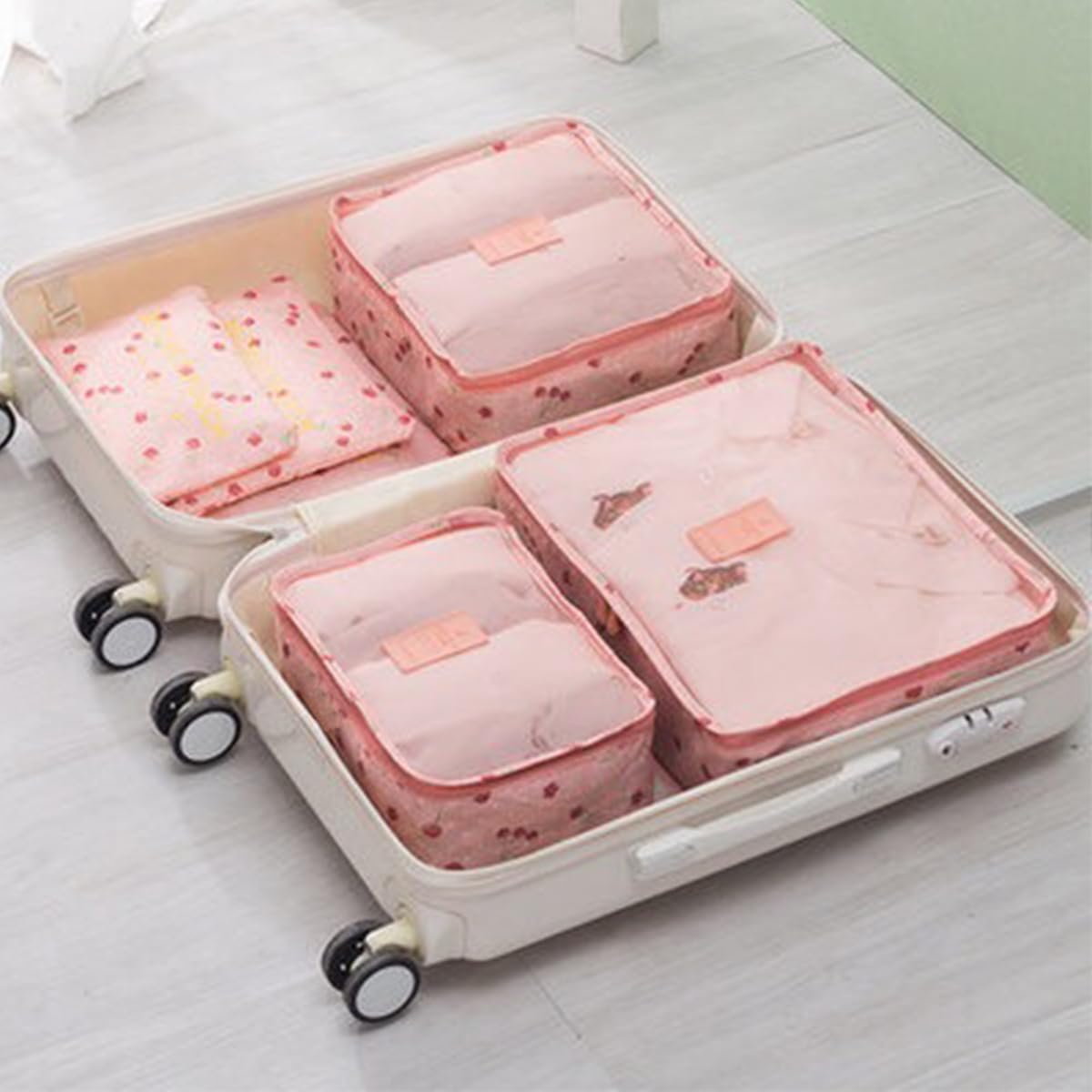 Laebevon 6 PCS Packing Cubes Multi-functional Clothing Sorting Packages Travel Carry On Luggage Organizers Storage Bags Travel Packing Pouches, Pink Cherry