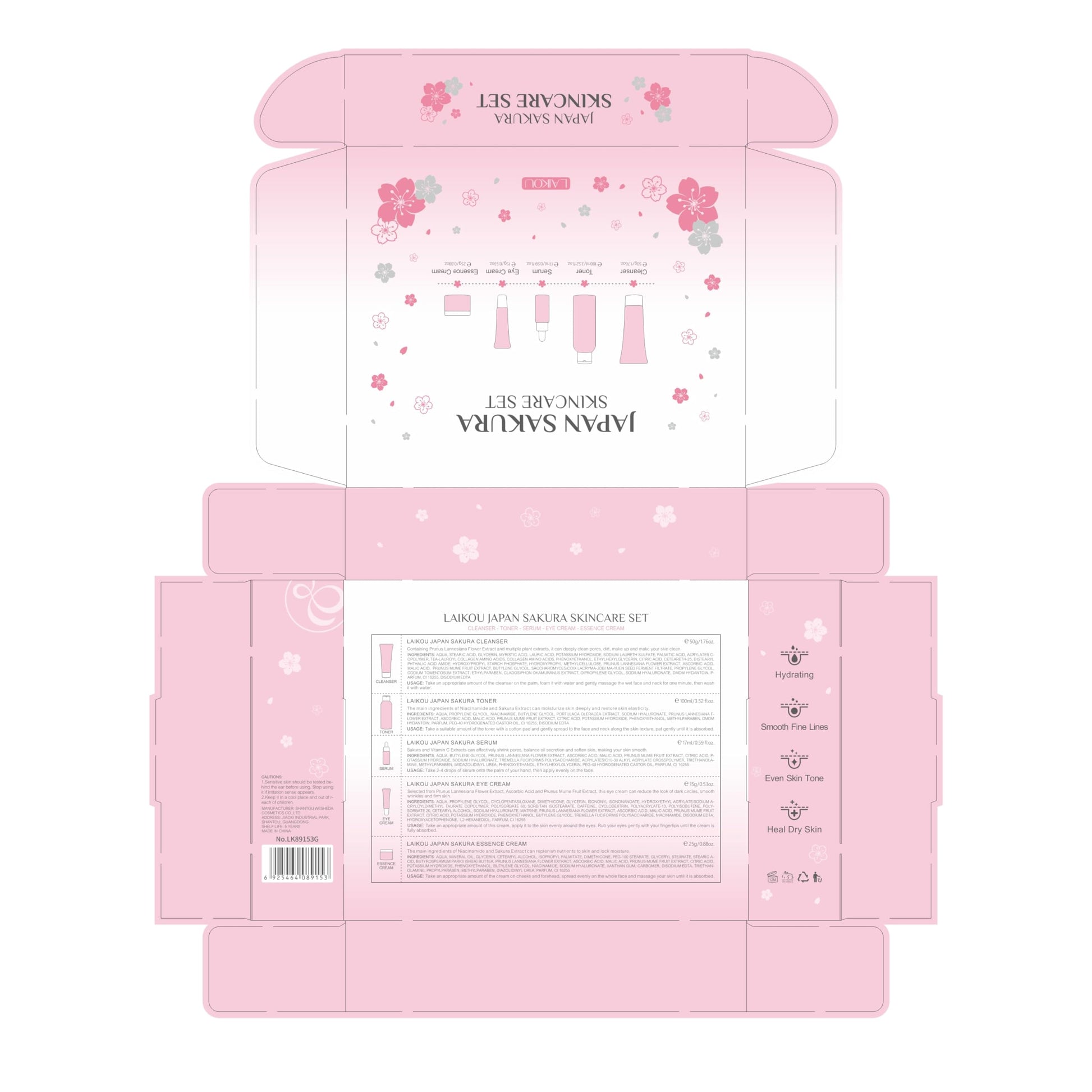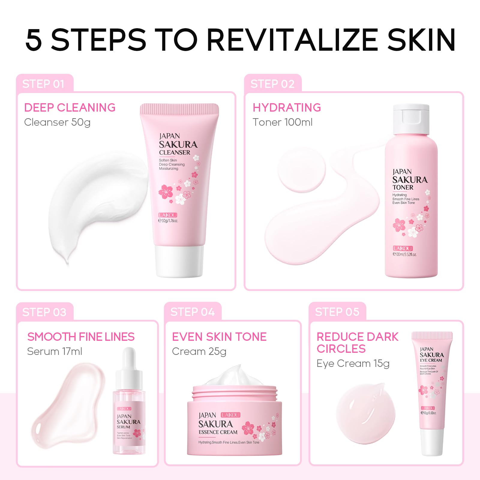 - 【Complete Facial Care Process】 LAIKOU Sakura Skin Set beauty gift can meet everything you need for facial care: Cleanser, Toner, Serum, Eye Cream, Face Cream.