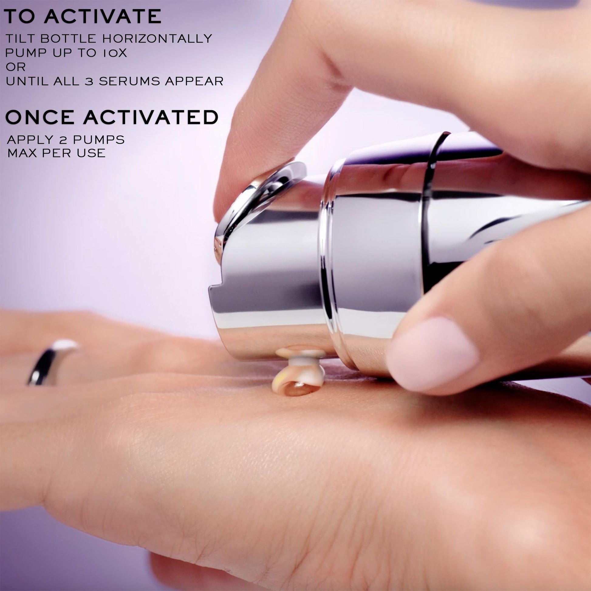 - If a dispensing delay does occur, turn the product horizontally and pump to help remove air pockets at the top of the chambers. While this usually takes 3-6 pumps, a small number of products may require more pumps to activate