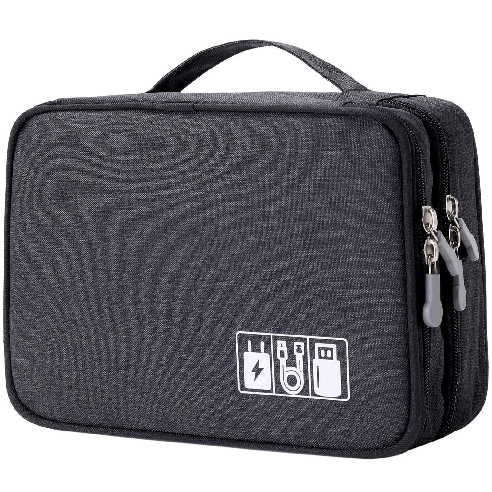 Lanola Travel Cable Organizer Bag, Electronic Accessories Case Portable Double Layer Cable Storage Bag for Cord,phone,Charger, Flash Drive, Phone, SD Card,Personal Items - (Black)