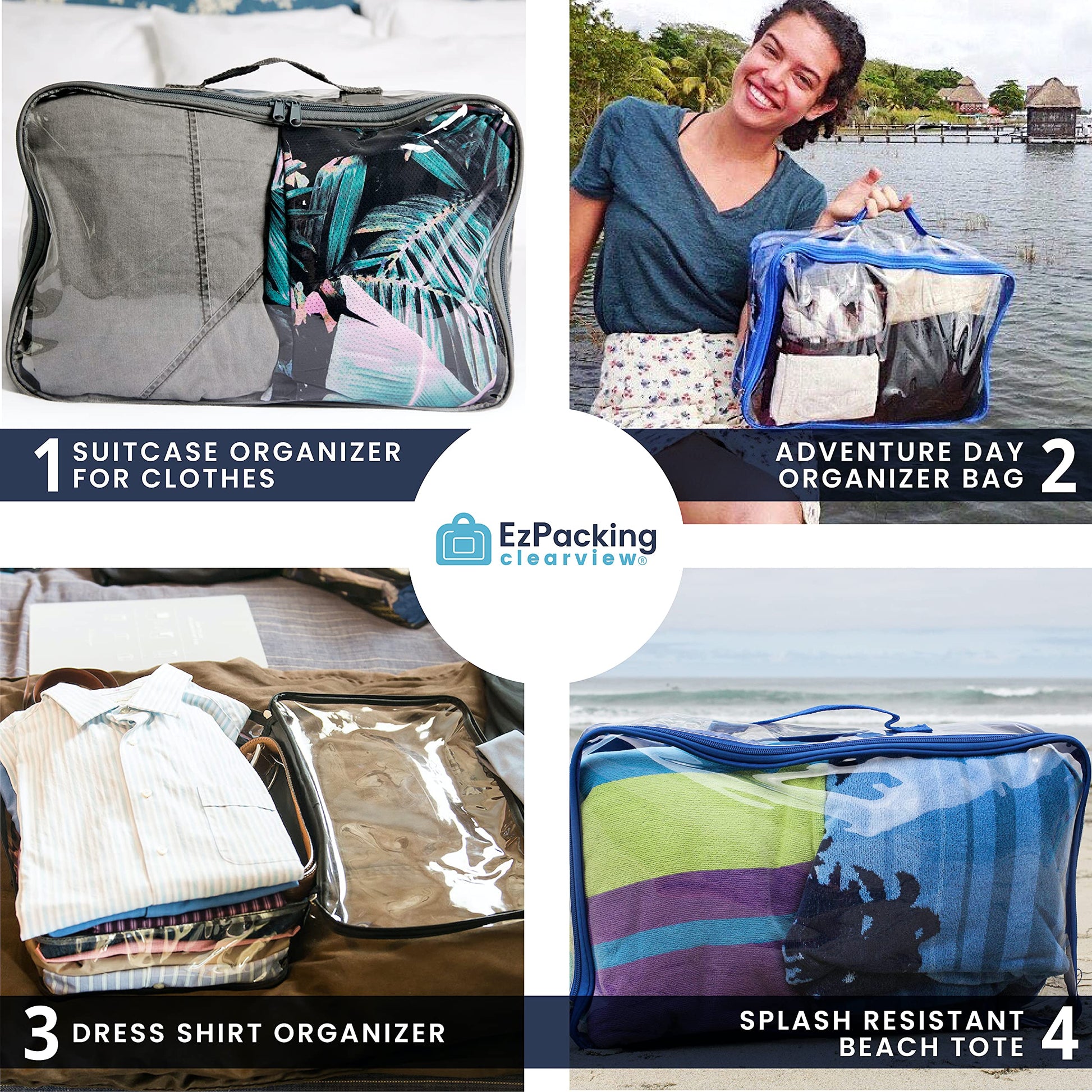 Large Clear Travel Packing Cube/See-Through PVC Organizer for Suitcase/Multipurpose Pouch w/Handle/Dress Shirts, Pants, Cashmere, Sweaters & Seasonal Linen Storage Protection (Gray)