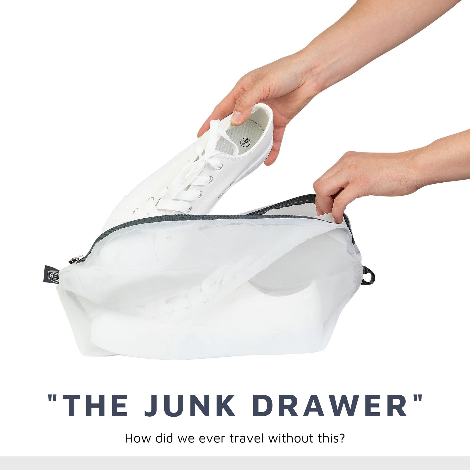 Large Packing Cube Set with See Through Mesh- Compression Packing Cubes Travel Organizers by TRIPPED Travel Gear (White)