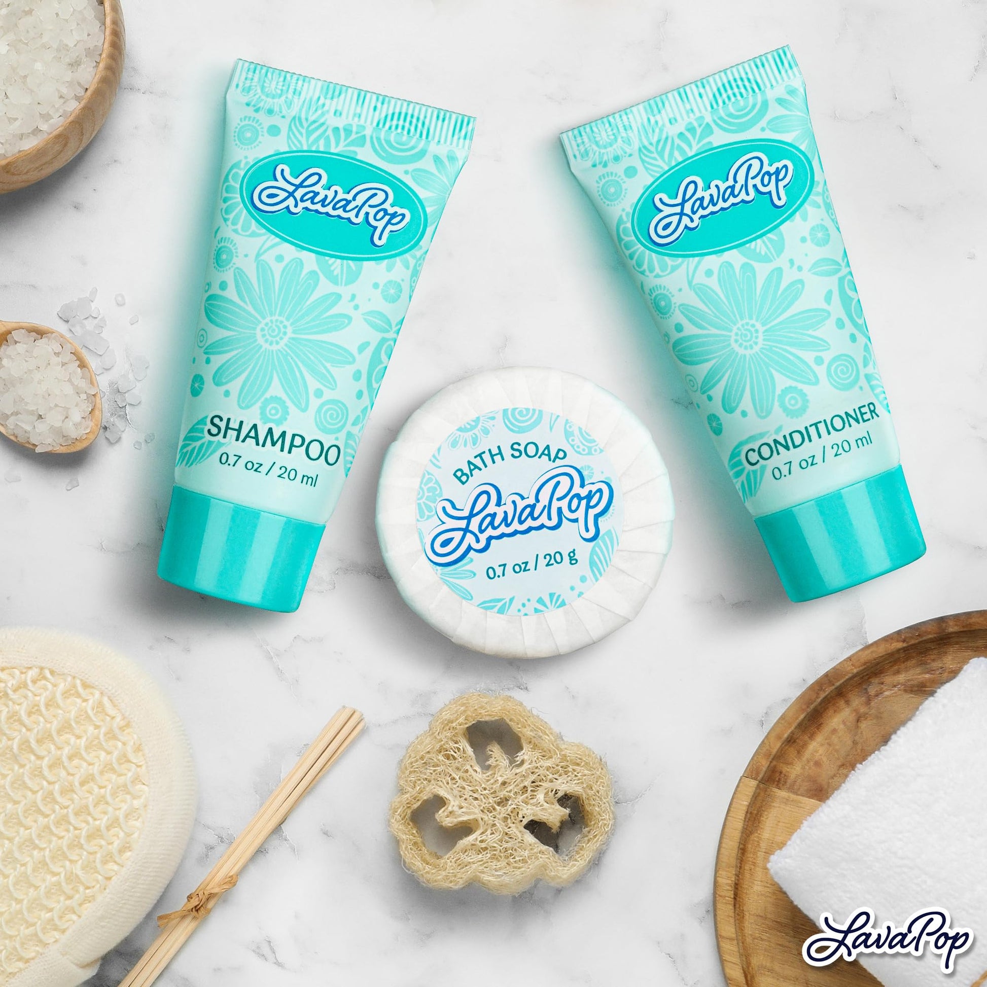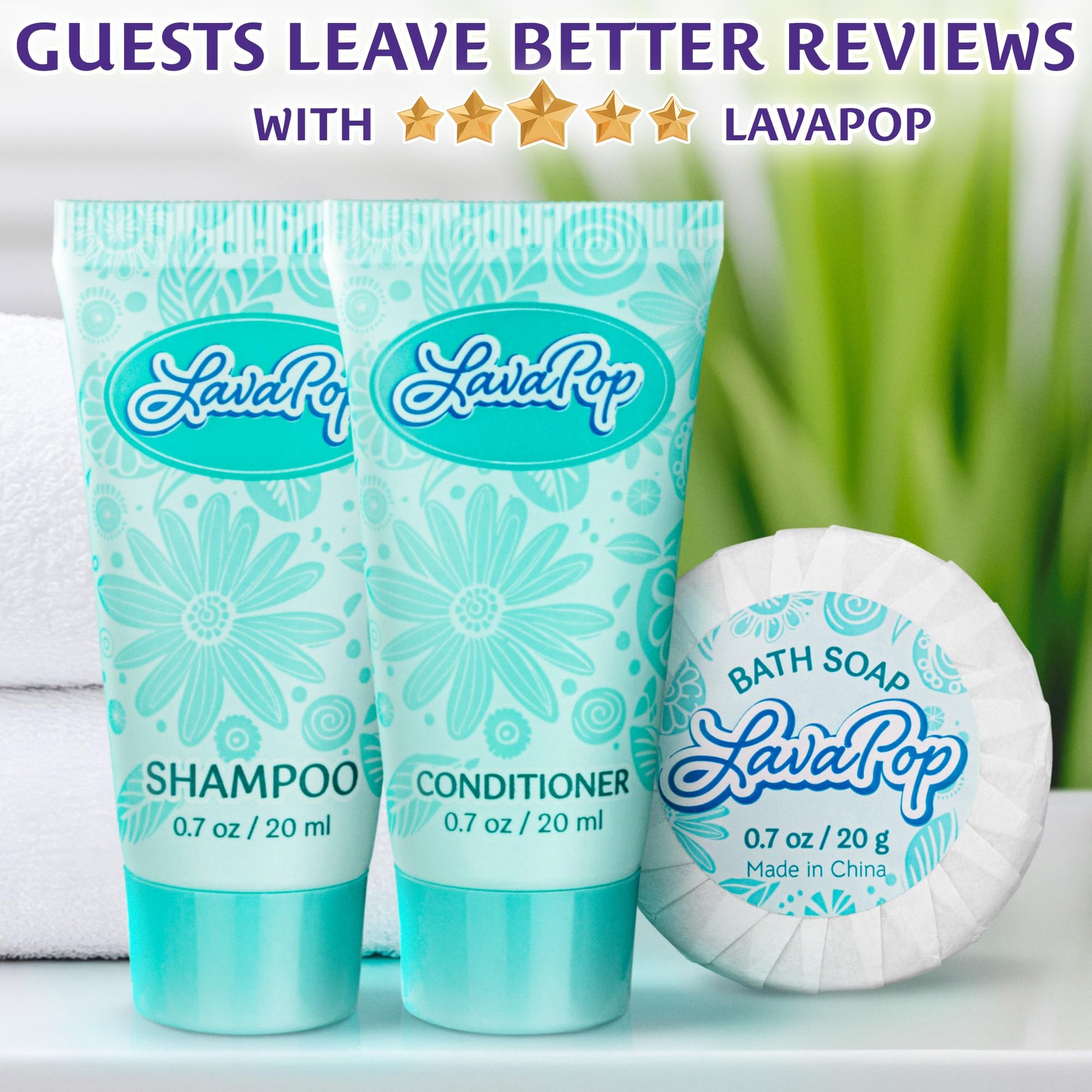 - DIVERSE CHOICES - LavaPop offers a range of premium hotel toiletries to provide guests w/ ultimate comfort, including 2-in-1 Shampoo & Conditioner, Bar Soap, Body Wash, Conditioner, Lotion & Shampoo
