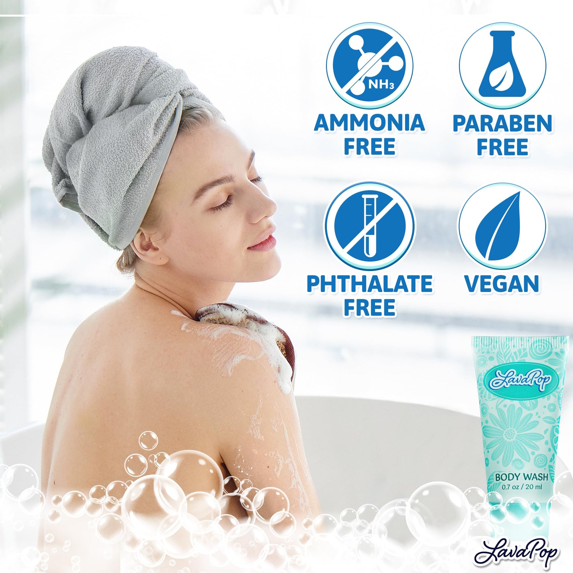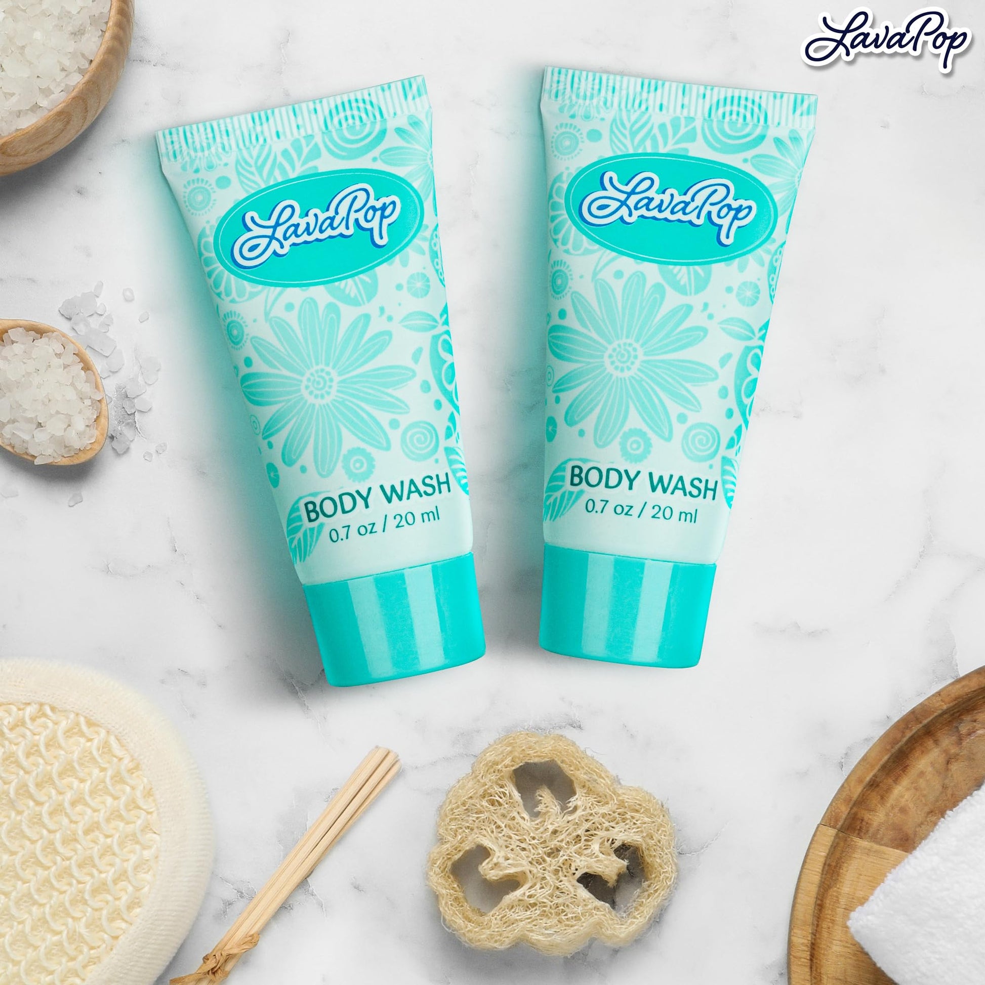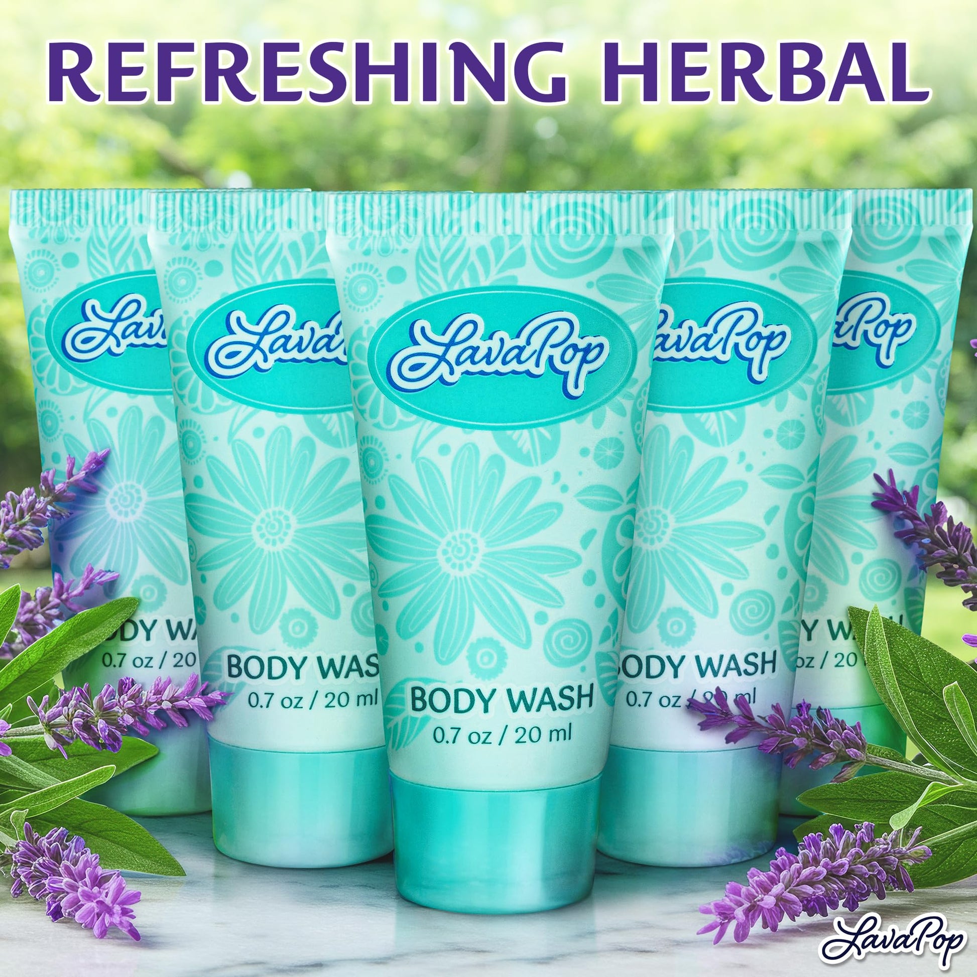 LavaPop - Travel Size Body Wash - Iris, Violet & Amber, 0.7 fl oz, 100 Pack - Delight Your Guests with Calming & Comforting Body Wash - Bulk Hotel Toiletries for Airbnb, Motels & Guest Rooms