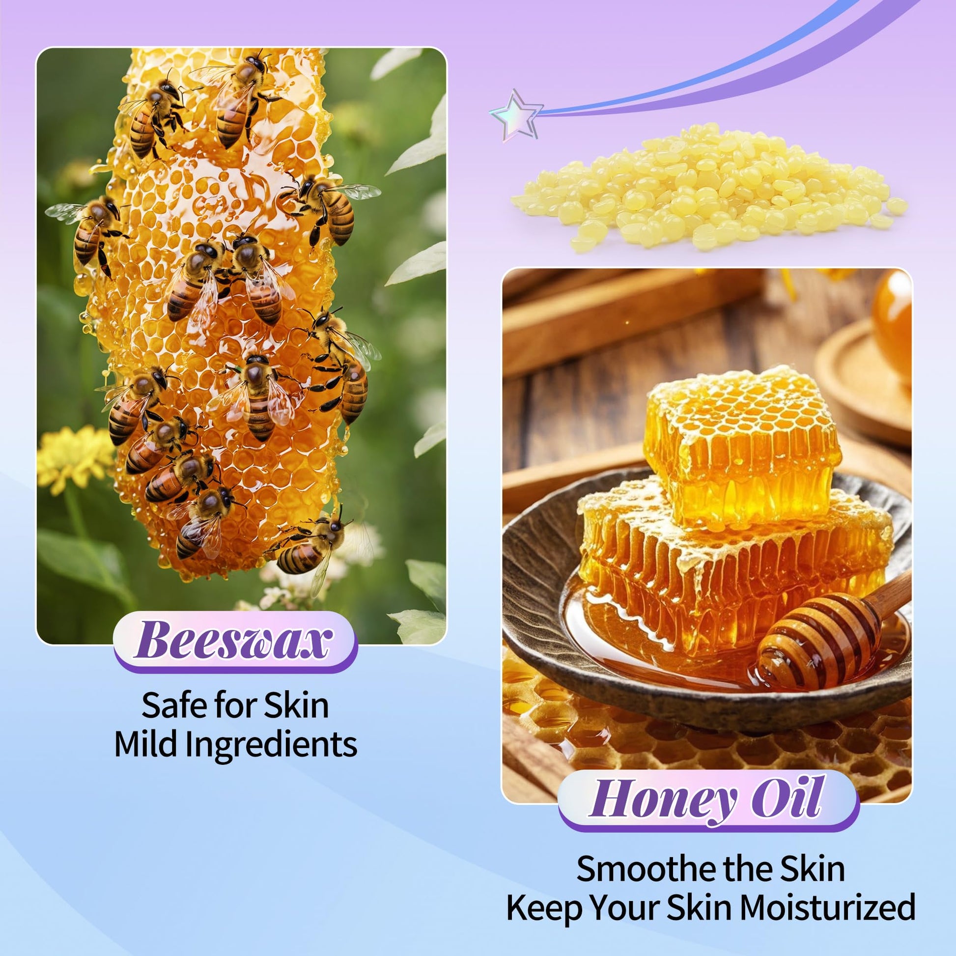- Gentle Wax Formula for Sensitive Skin: The natural honey-flavored wax adheres to hair, not skin, providing a pain-reduced experience. Hypoallergenic and free from harsh chemicals, this formula is safe for sensitive areas like the nose and ears, offering a comfortable waxing session for all skin types
