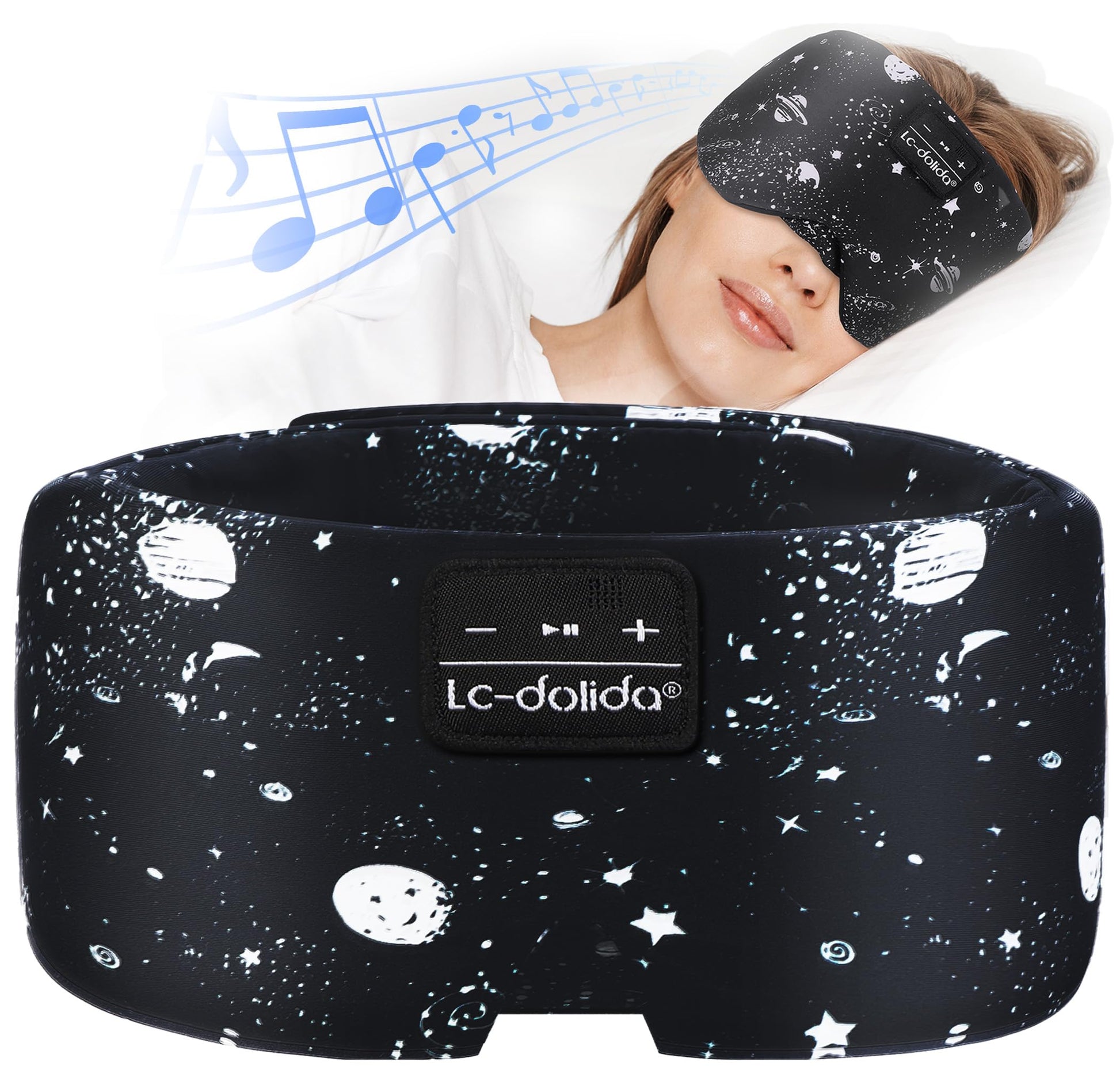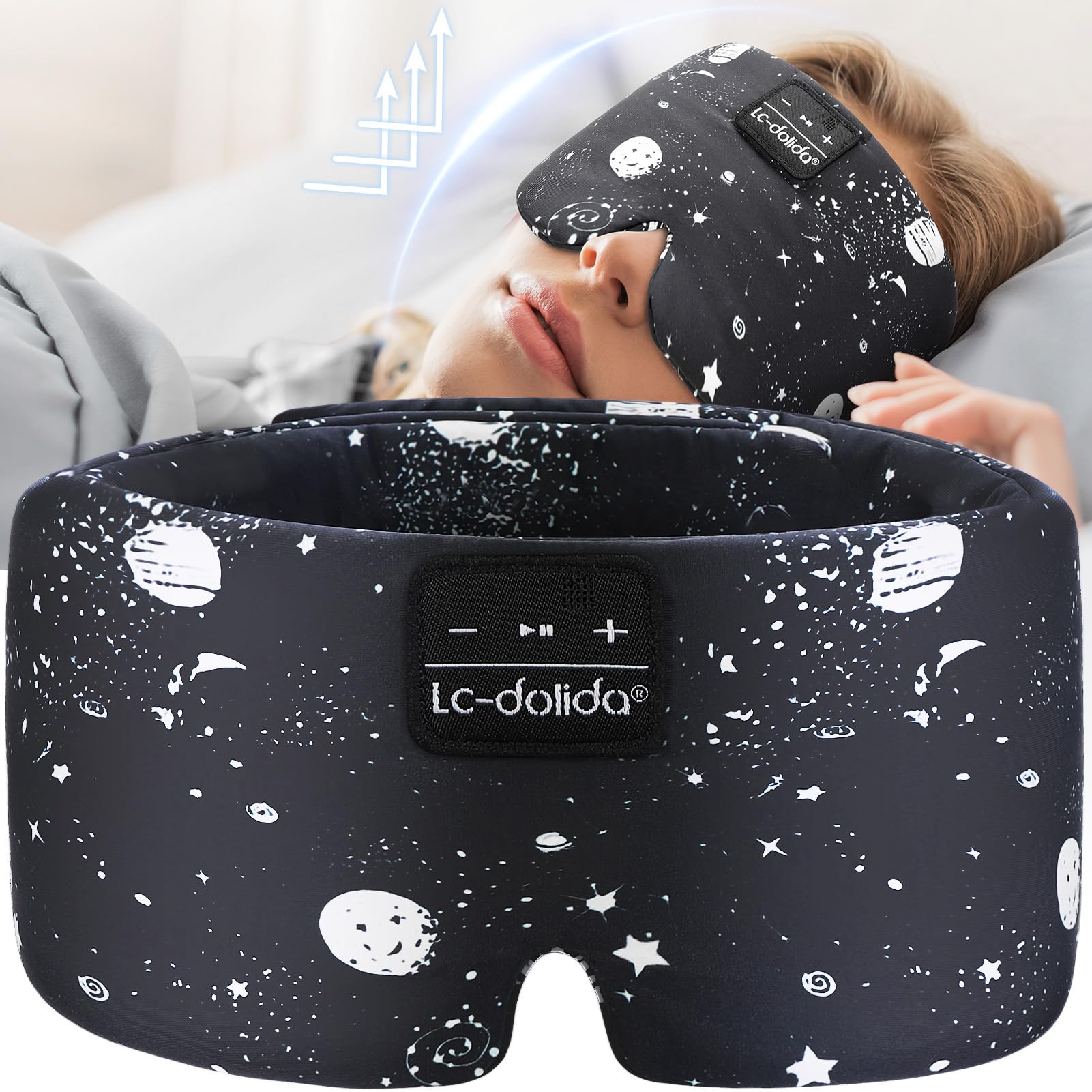 LC-dolida Sleep Mask with Bluetooth Headphones, Extra Large Silk Eye Mask for Sleeping Side Day Sleepers, Sleep Headphones Bluetooth 5.4 for Women Men with Thin Speaker, Blackout, Comfort, Microphone