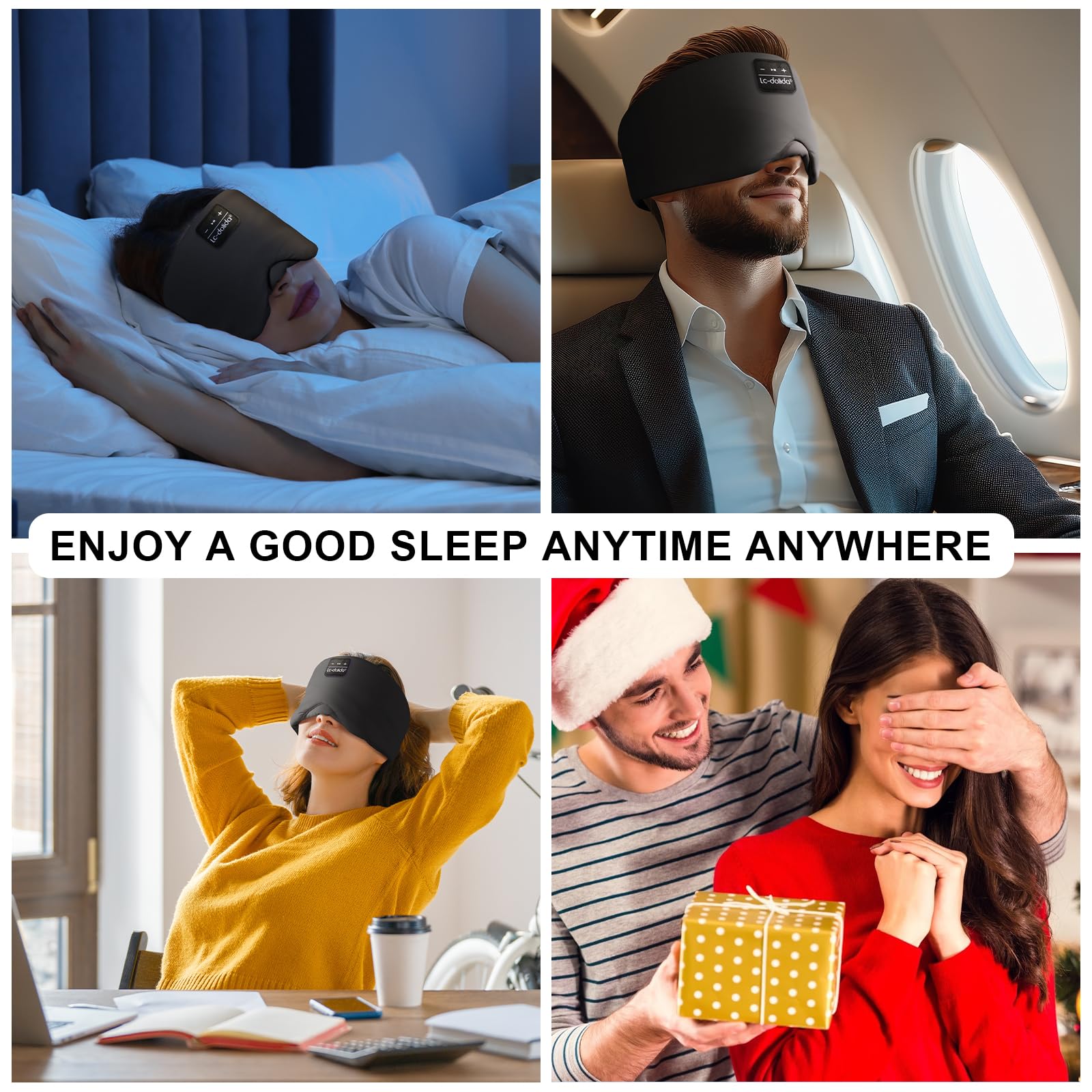 - Idea Gift Choice: Experience the ultimate Bluetooth sleep mask, perfect for nighttime sleep, business trips, and office naps. Its versatility makes it an ideal birthday or Christmas gift for friends, parents, and loved ones. Thoughtful little gift: The package includes 2 noise-canceling earplugs and 1 portable storage bag, which is convenient for you to carry with you when you go out. Enjoy restful sleep anywhere, making it a thoughtful gift that shows you care