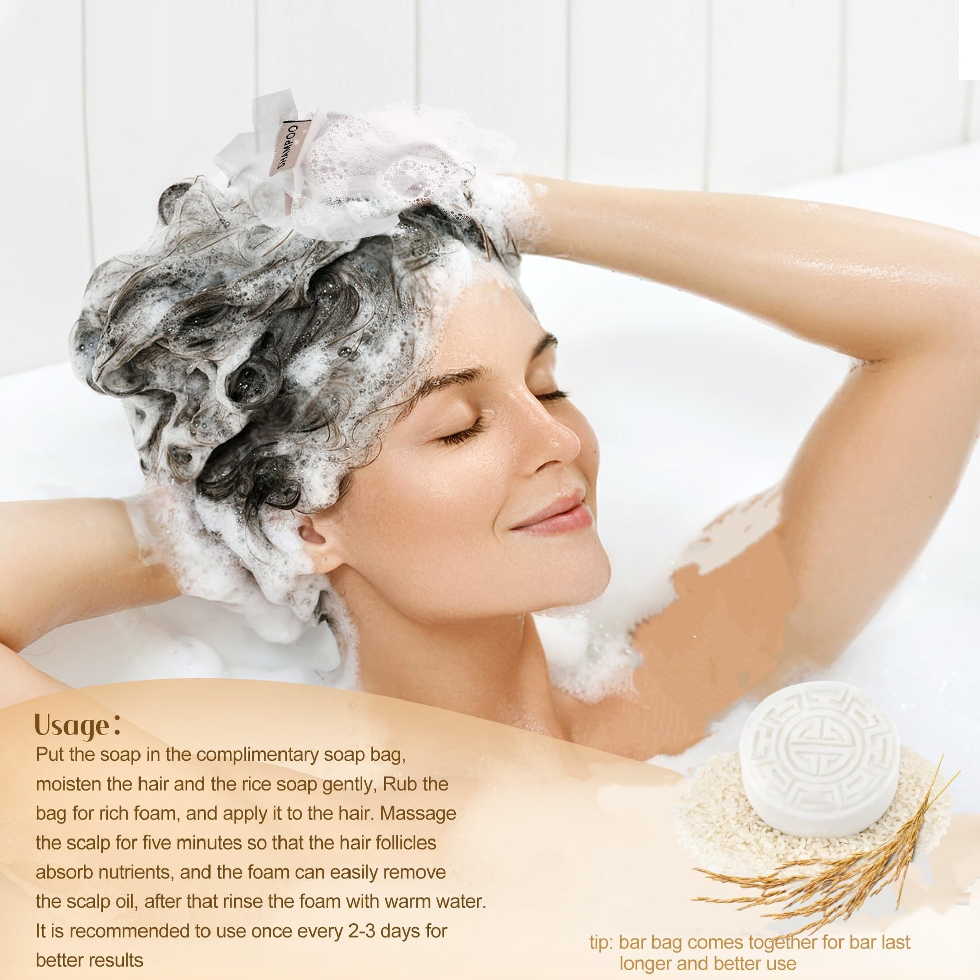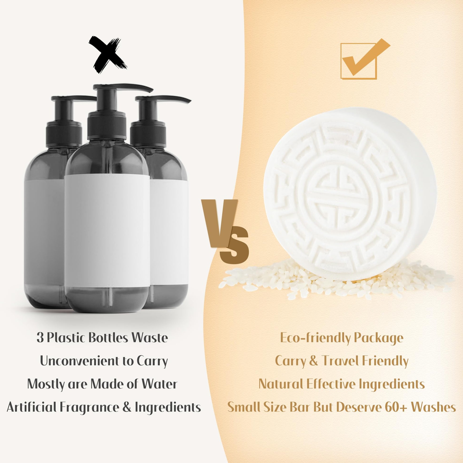 - đż Plastic-Free, Zero-Waste Rice Shampoo Bar: Say goodbye to plastic bottles with our eco-friendly shampoo bar! Made with rice water for hair growth, this solid shampoo is packed in compostable, recyclable paper bags, reducing waste and supporting a greener planet. Perfect for those seeking a sustainable alternative to traditional shampoo and conditioner sets