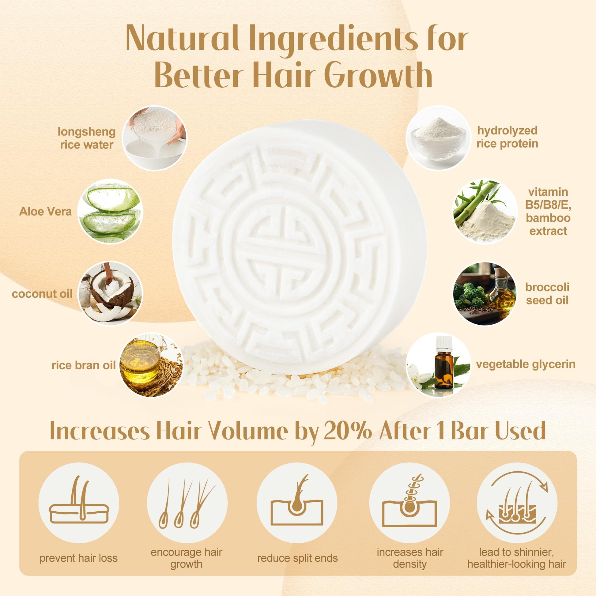 - ⨠2-in-1 Rice Water Shampoo and Conditioner Bar: Enjoy the convenience of a shampoo and conditioner bar in one! Infused with rice bran oil, hydrolyzed rice protein, and vitamin B5, this bar shampoo effectively removes grease, strengthens hair, reduces breakage, and promotes growth. Itâs the ideal rice water shampoo bar for shinier, healthier hair
