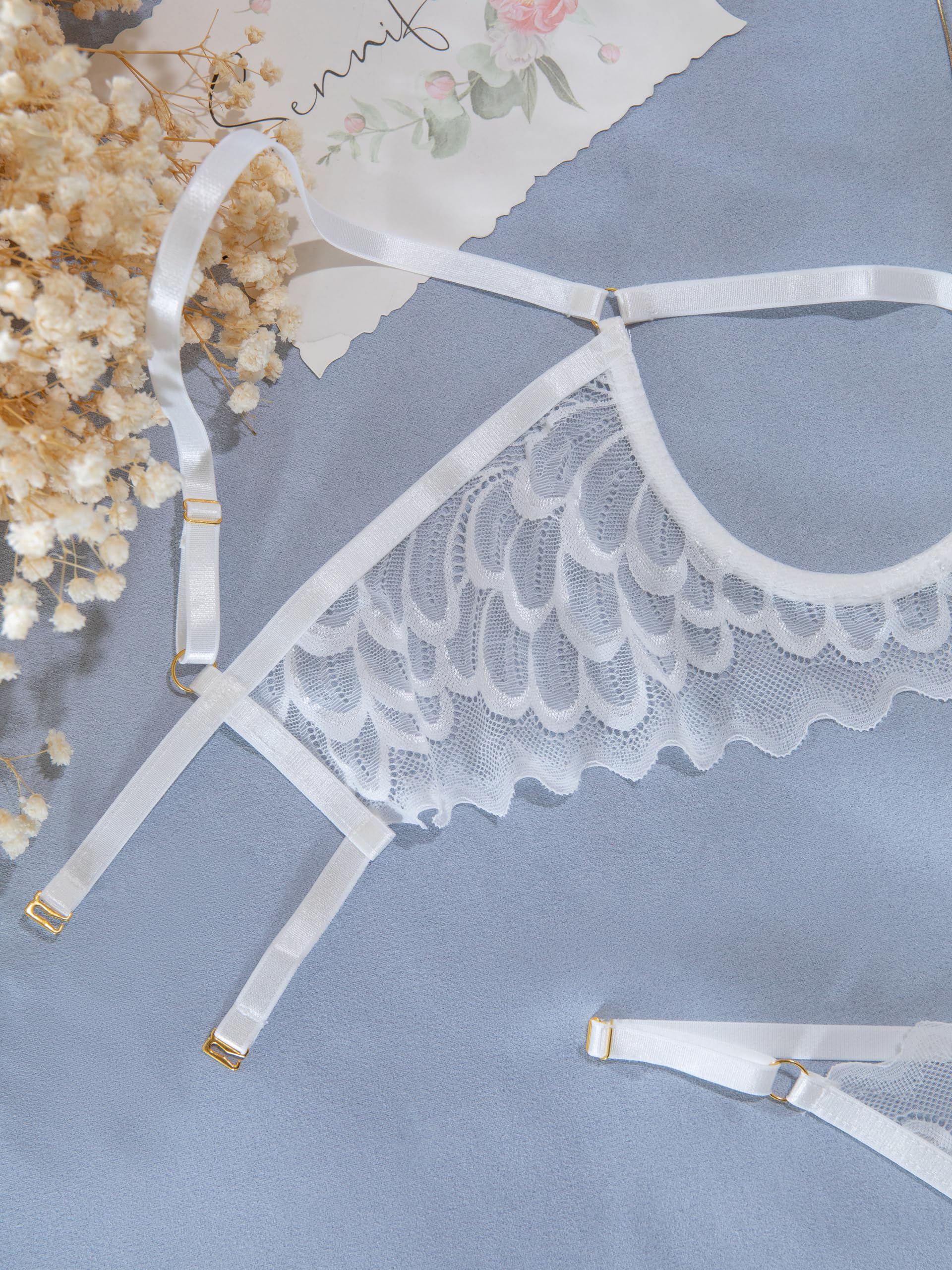 Lilosy Sexy Underwire Floral Lace Sheer Bachelorette Lingerie Set for Women See Through Bra and Panty 2 Piece White Large