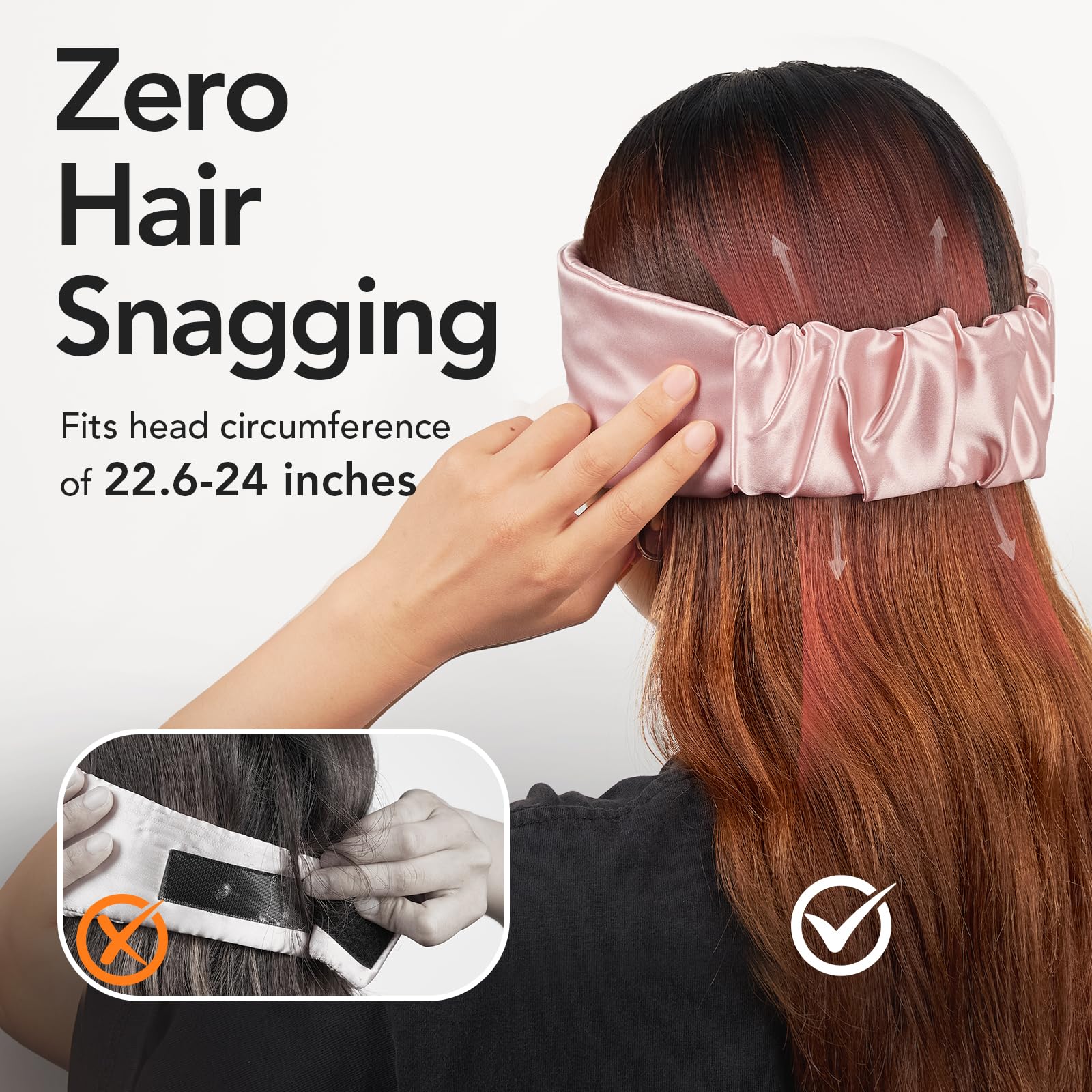 - Elastic Adjustment & Hair-Friendly: Our silk eye mask for sleeping features a flexible elastic band that provides a one-size-fits-all solution (fits head circumference of 22.6-24 inches). Our silk face masks offers comfort without snagging hair, making it ideal for a smooth, hair-friendly experience