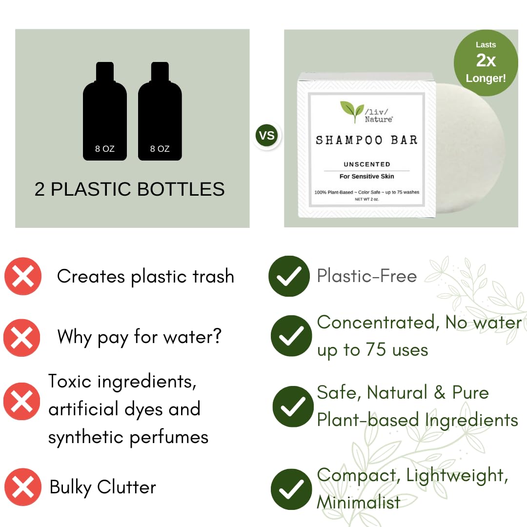 /liv/ Nature Fragrance Free Shampoo Bar | Clean Non Toxic Shampoos | Hypoallergenic | Gentle, Safe for Sensitive Skin, Psoriasis | Unscented | Travel | Handmade in USA 1-pk