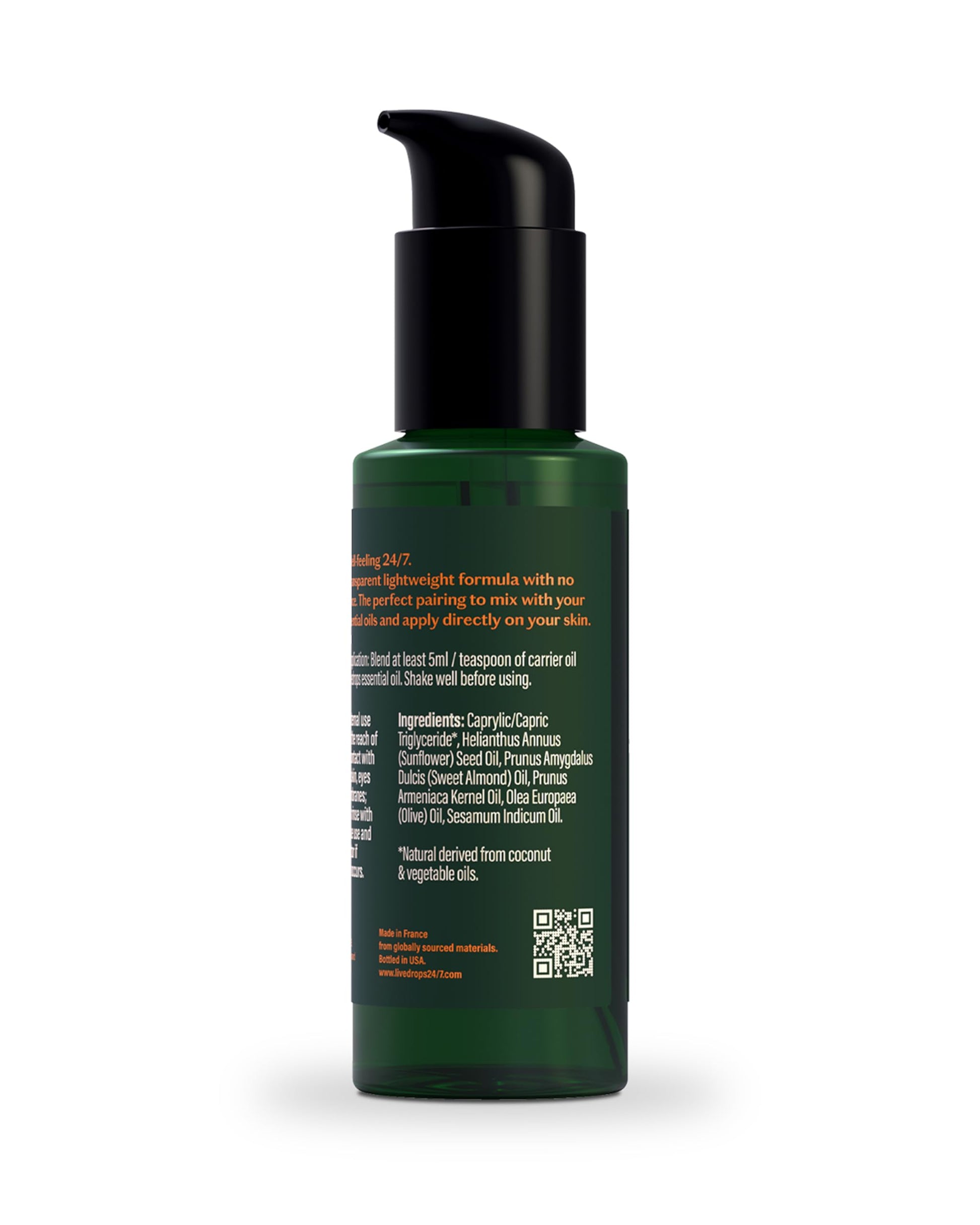 Livedrops 24/7 Unscented Carrier Oil for Essential Oils – Skin Safe, Vegan, Odorless, Fast Absorbing – Mix for Dilution, Massage, Hair & Face Care – Crafted in France – Clinically Tested