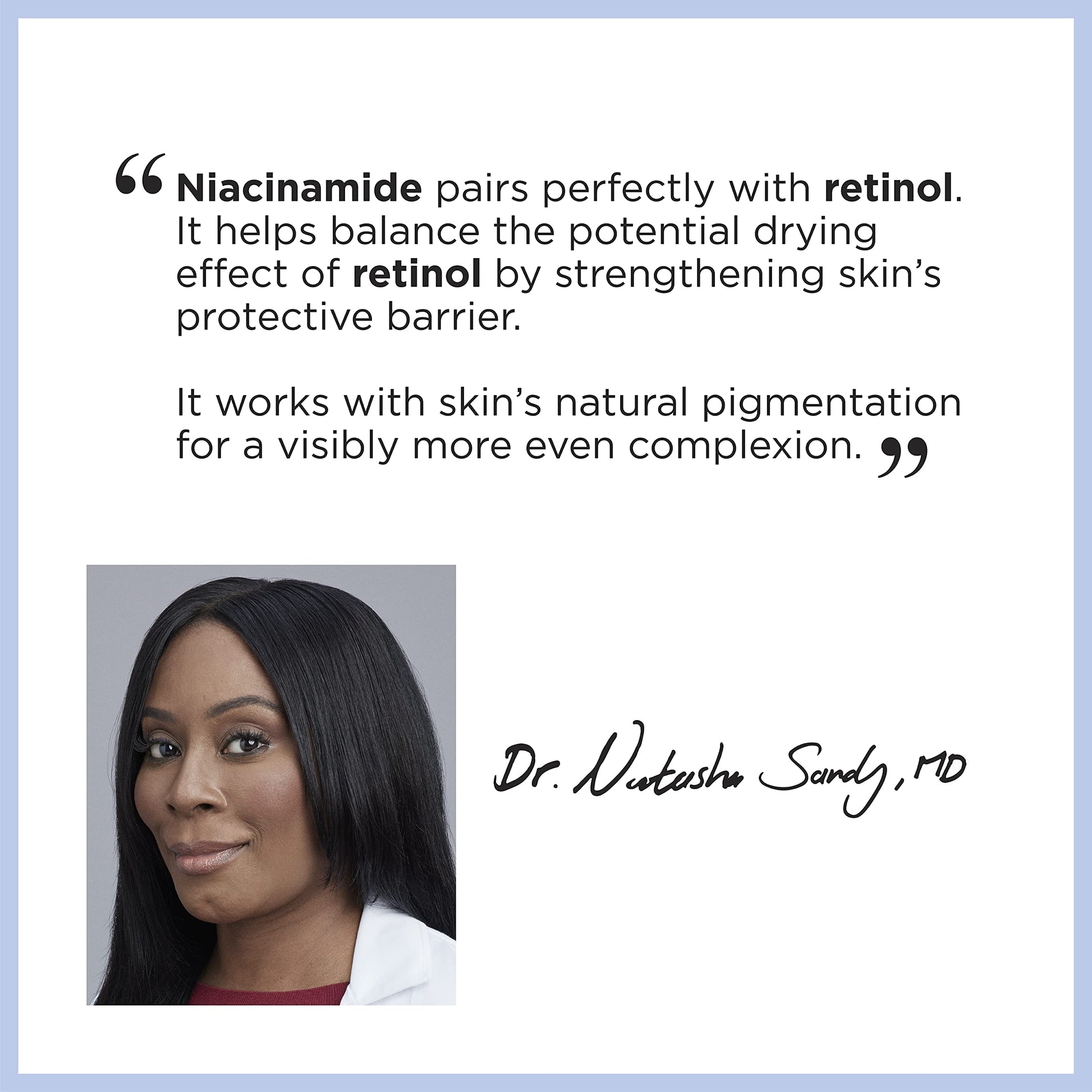 - Soothing Formula: Features Retinol, a top dermatologist recommended ingredient, plus Niacinamide, a nutrient that helps brighten skin for a healthier-looking complexion; Balanced with soothing Panthenol, Glycerin and Hyaluronic Acid