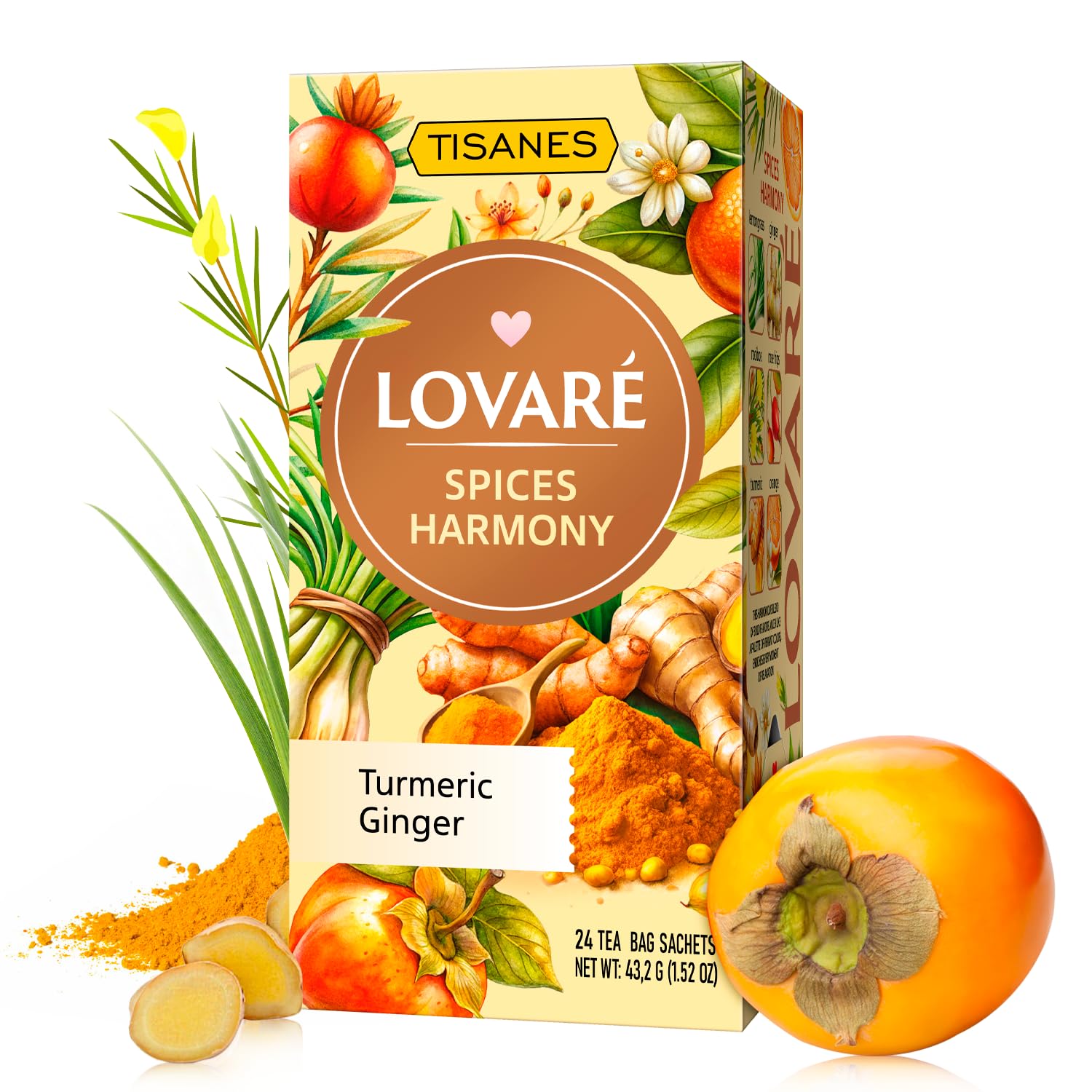 LOVARE Spices Harmony Herbal Tea, Caffeine-Free Fruit & Spice Infusion, Persimmon + Mandarin, 24 Individually Wrapped Bags (1.8 g each), Made in Ukraine (SPICES HARMONY)