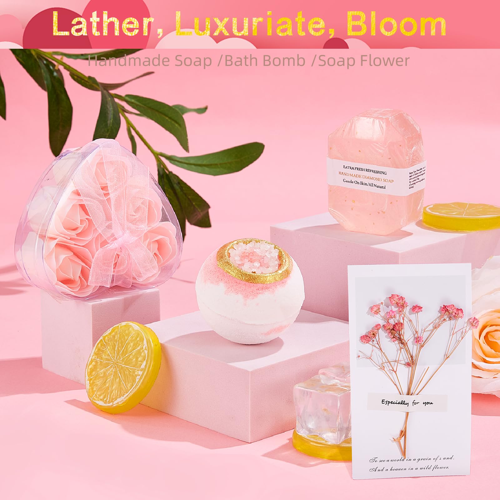 - Spa-Worthy Relaxation in Every Bubble: The velvety rose-scented soap glides on skin while fizzy bath bombs release calming lavender aromas. Designed as the ultimate self care gifts for women to melt away stress - whether she's soaking after yoga, unwinding post-work, or needing post surgery recovery gifts that boost her mood. Each piece in this luxury bath set for her turns ordinary nights into peace。