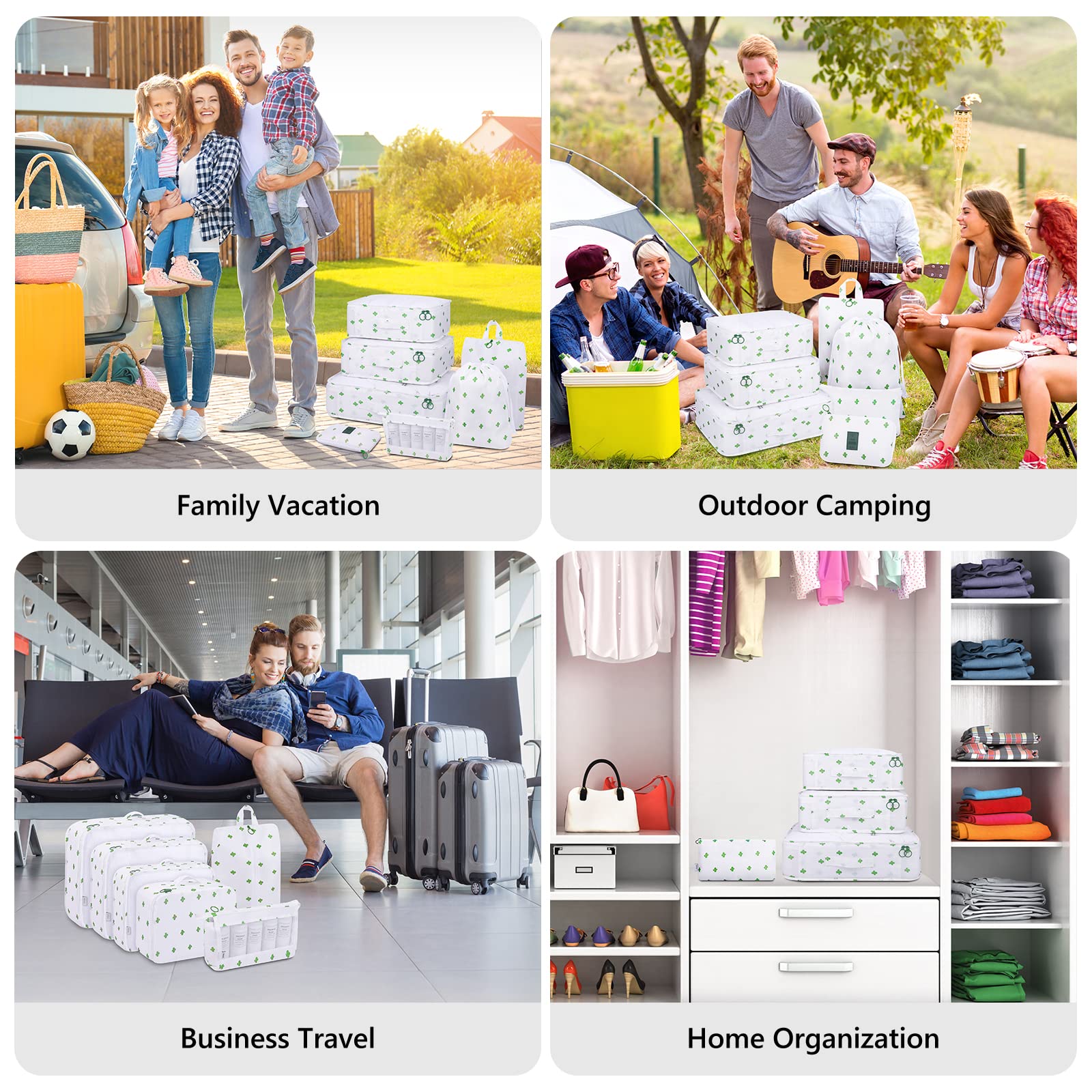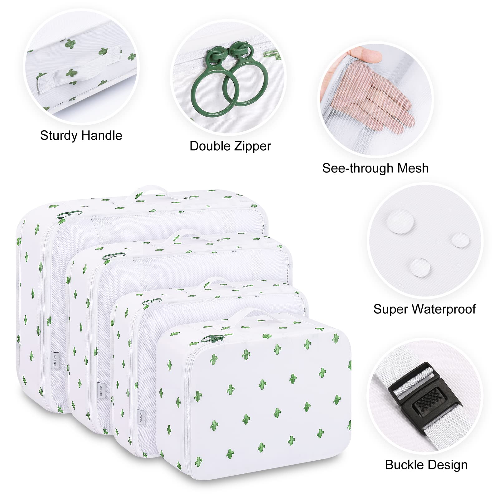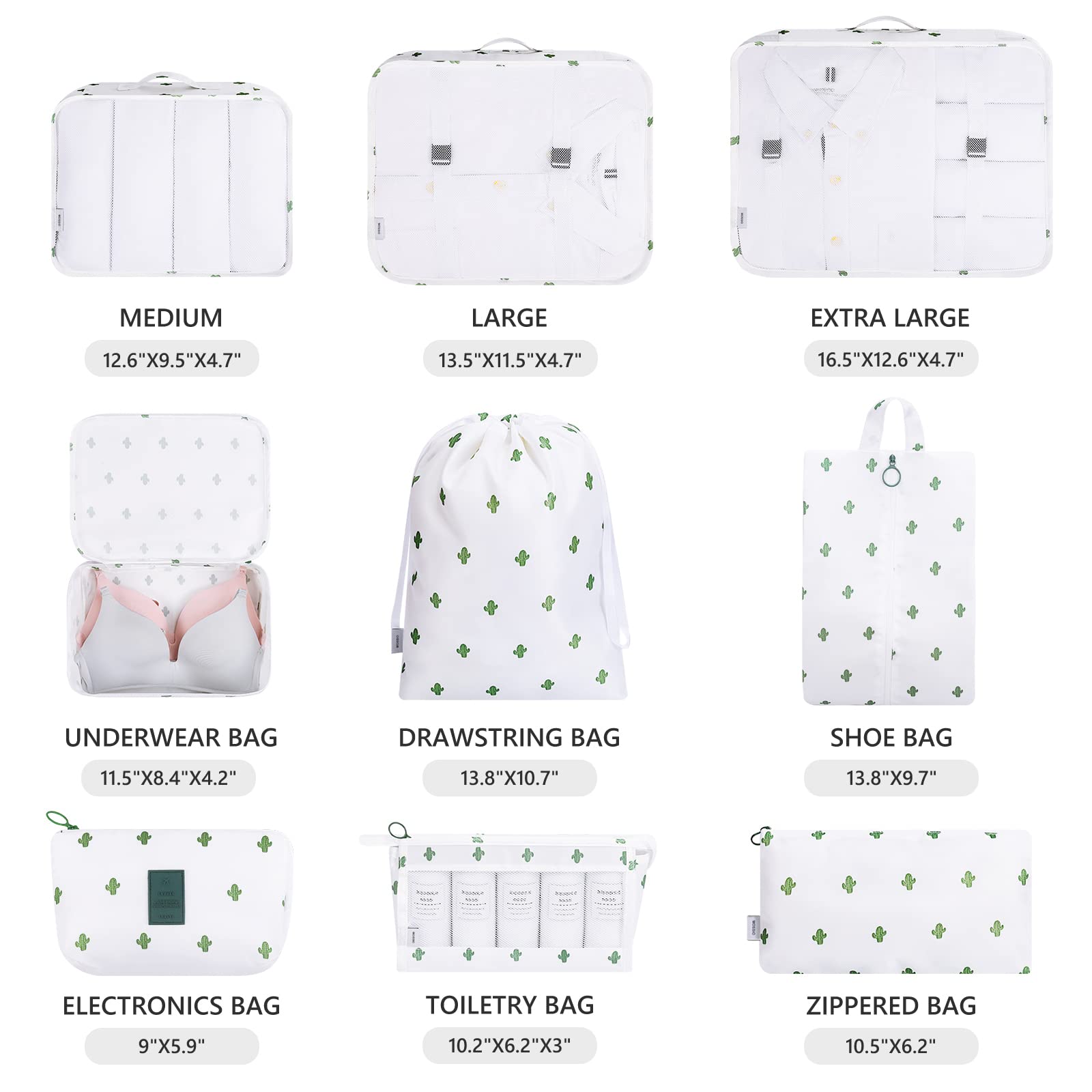 Luggage Cubes, Mossio 9 Set Travel Essentials Backpack Organizer for Women & Men White Cactus