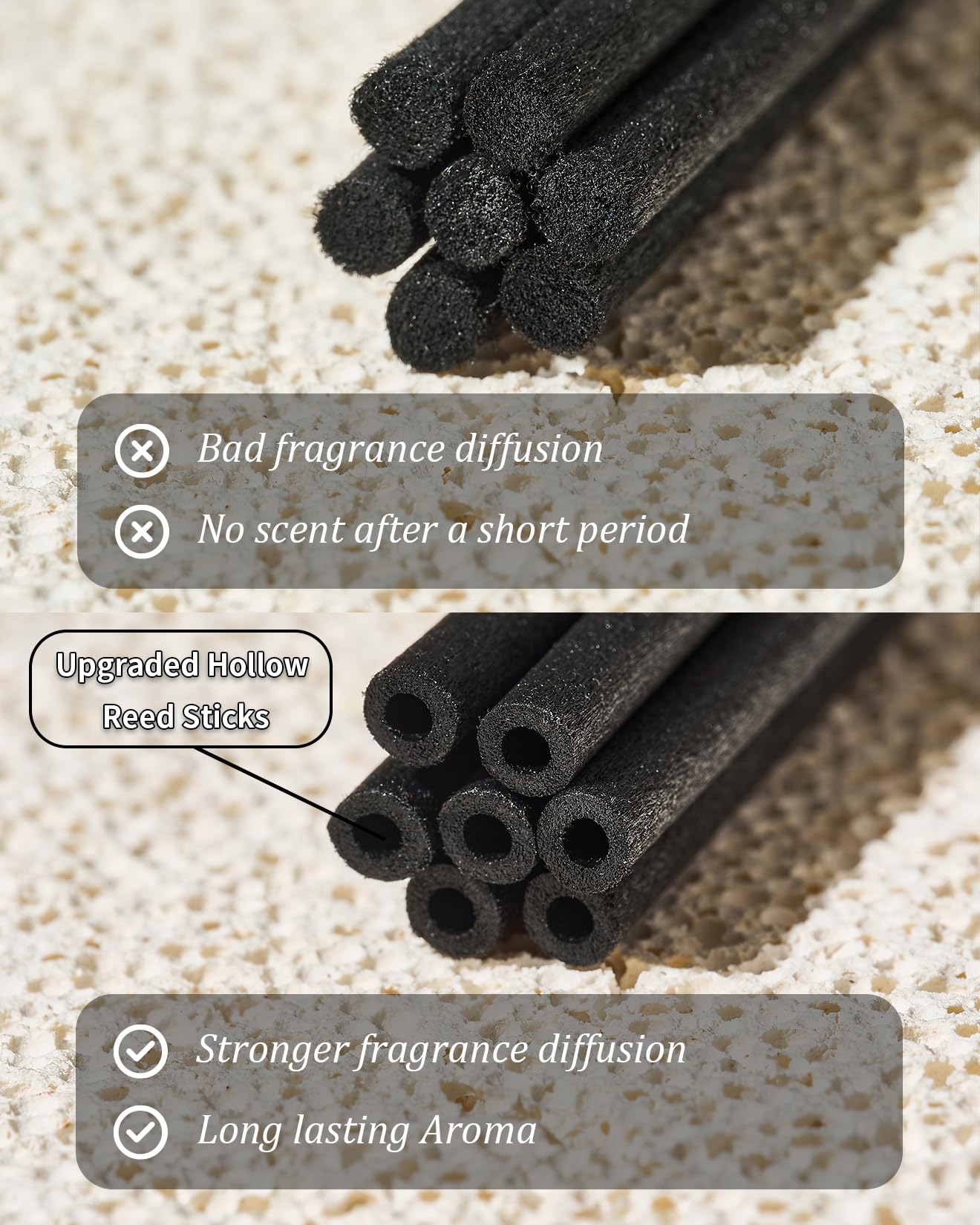 - Upgraded Hollow Reed Sticks - Outperform solid sticks with stronger scent diffusion and wider coverage. Dust-resistant design prevents clogging, ensuring long-lasting fragrance without fading.