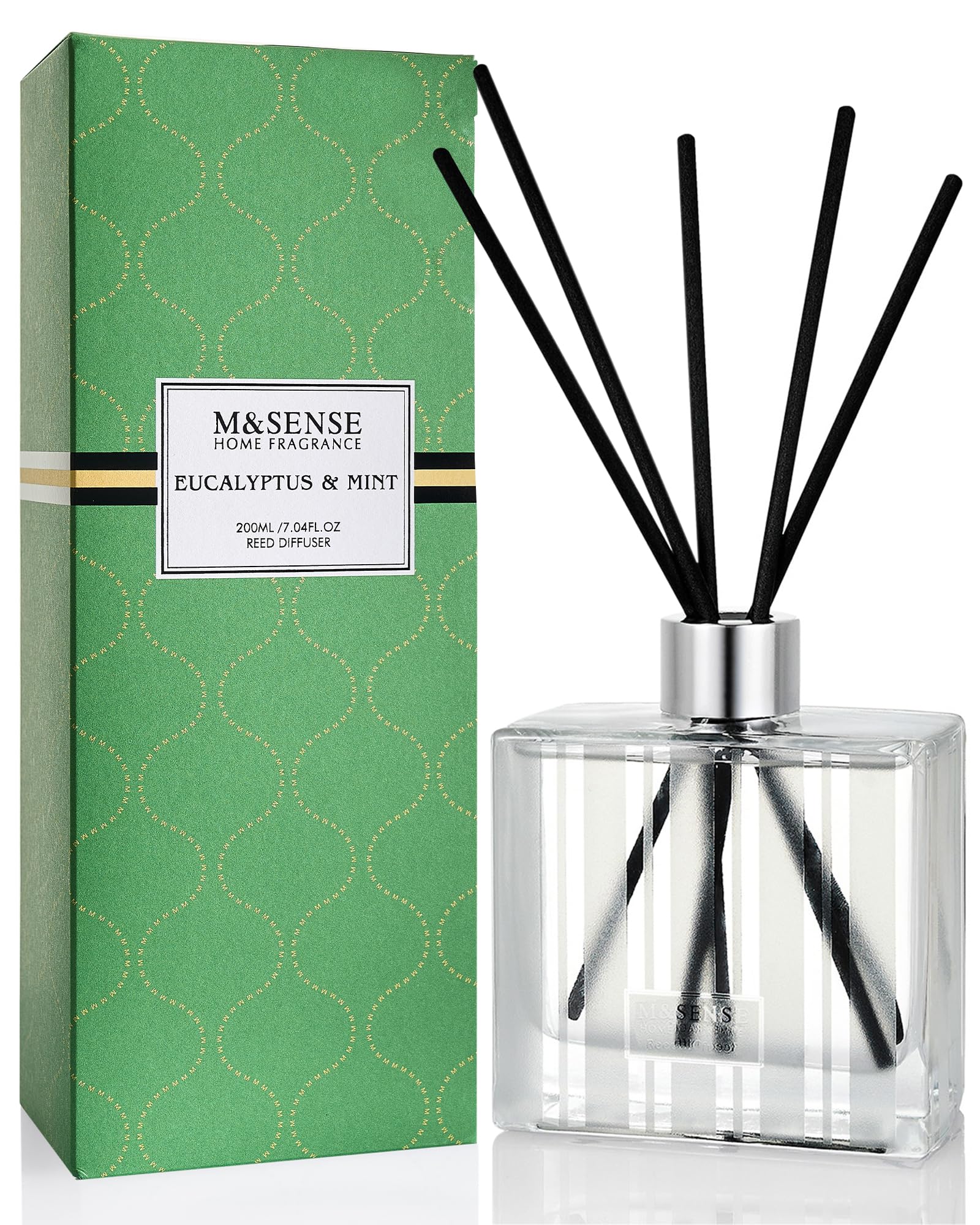 - Scent Reed Diffuser - M&SENSE reed diffuser set comes with 7 oil diffuser sticks, an elegant glass vessel with premium natural essential oil (7.04oz/200 ml). This scented Diffuser can provide a continuous fragrance for 60 to 95 days.
