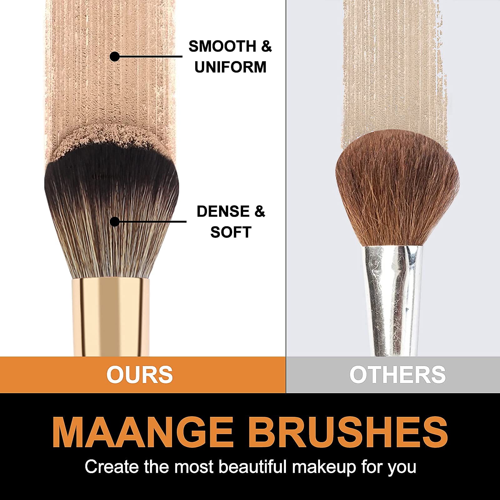 - MAANGE UPGRADE MAKEUP BRUSHES SET: Contains 10 basic makeup brushes for liquid foundation, eye shadow, concealer, etc. 1 makeup brush case, 1 makeup sponge and 1 Brush cleaner mat. A full set of makeup equipment, take care and storage of your make up brushes, save worry and effort, and Let each makeup brush give full play to its effect and not be left unused.