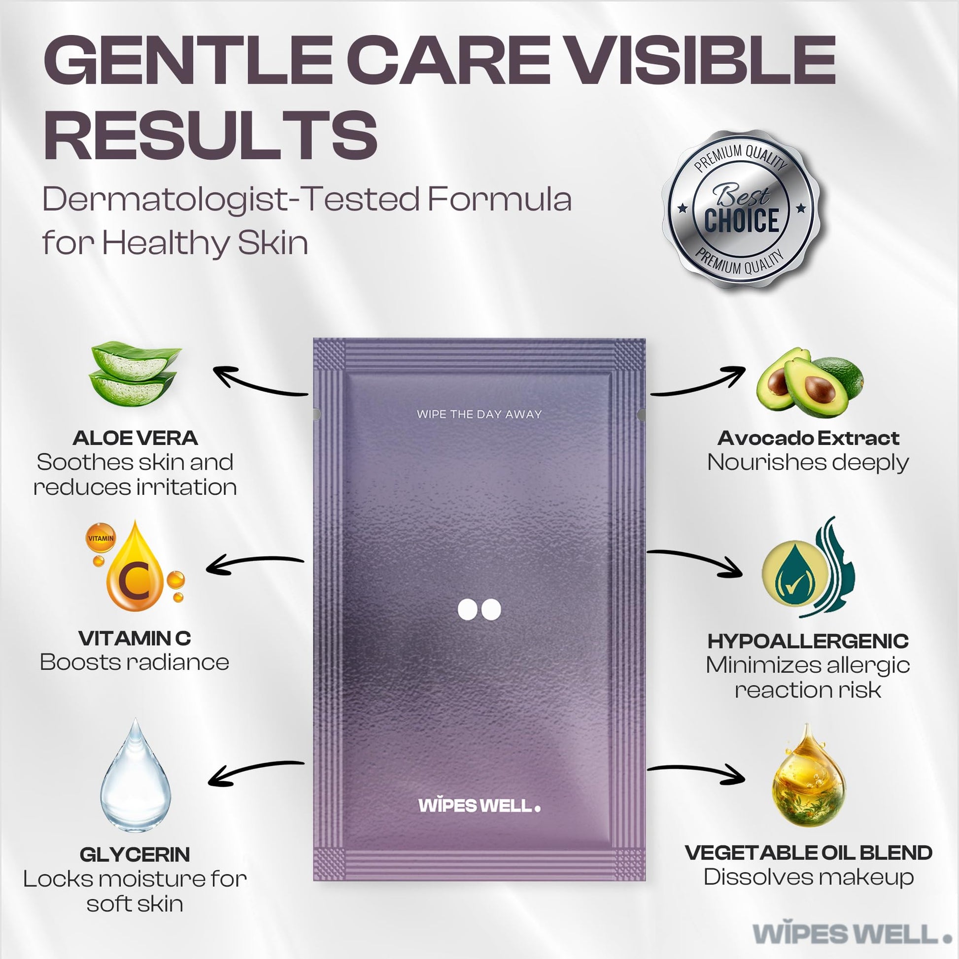 - Effortless Makeup Remover: Facial wipes that gently cleanse and remove even the waterproof makeup. Perfect for busy lifestyles and on-the-go moments. Perfect as face cleansing wipes.