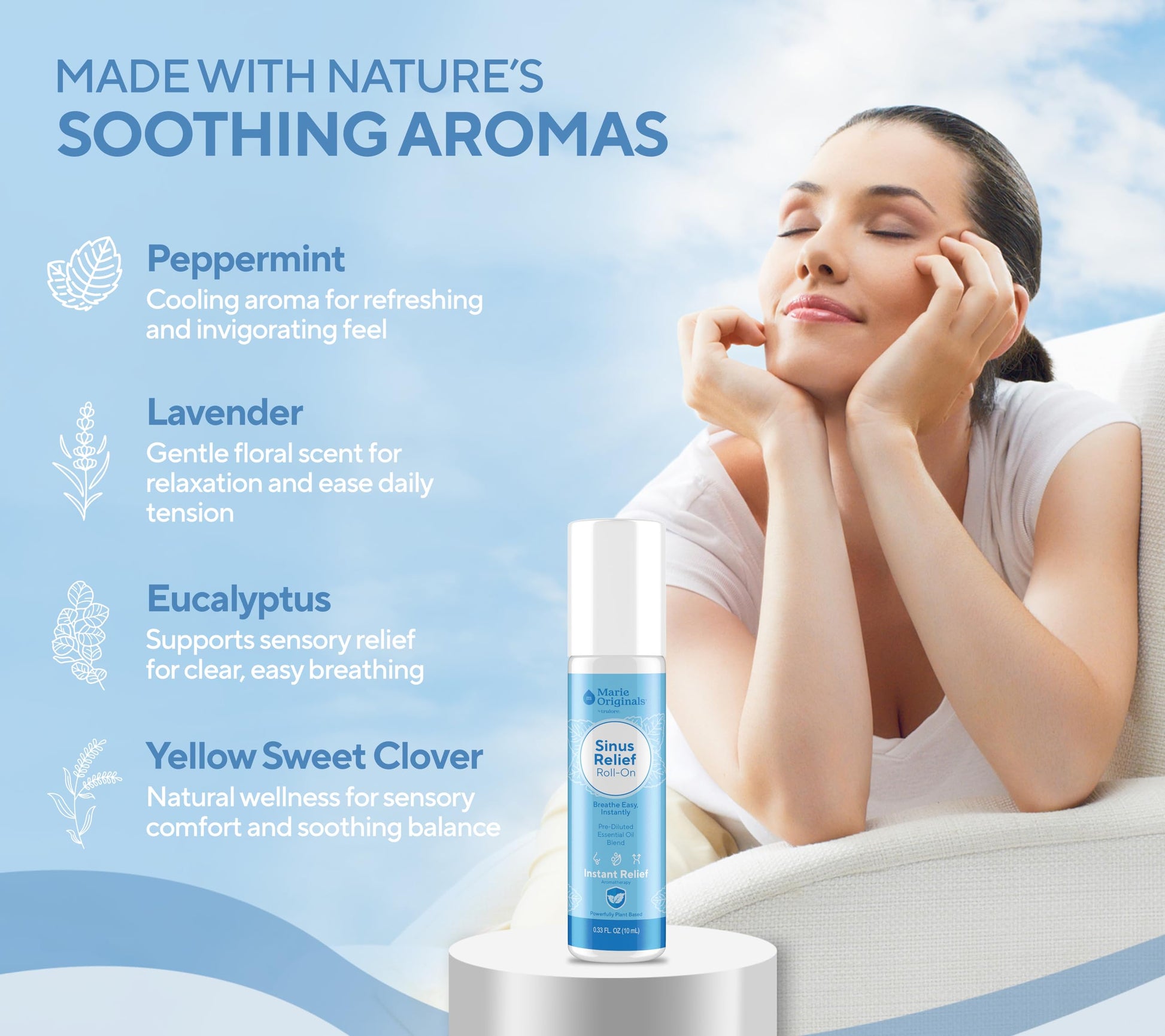 - Natural Aromatic Blend for Sensory Comfort: Experience the soothing aromatic benefits of Marie Originals Sinus Roll On Essential Oils, crafted with a pre-diluted blend of natural essential oils designed to provide a comforting sensory experience.