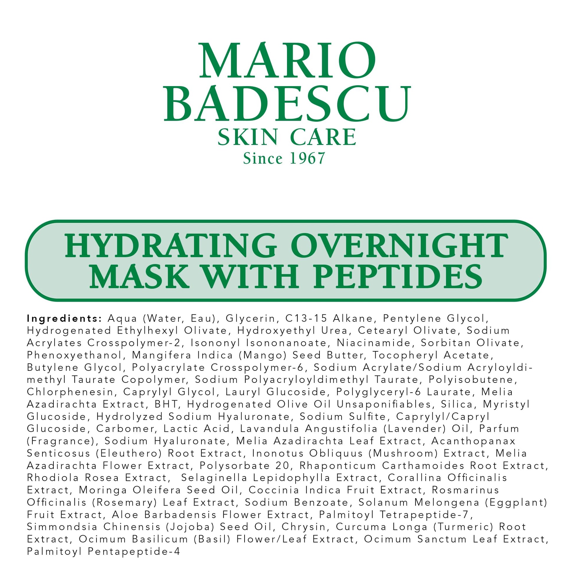 Mario Badescu Hydrating Overnight Mask with Peptides for All Skin Types | Anti-Aging Sleep Mask that Hydrates | Formulated with Palmitoyl Pentapeptide-4 and Palmitoyl Tetrapeptide-7| 2 fl OZ