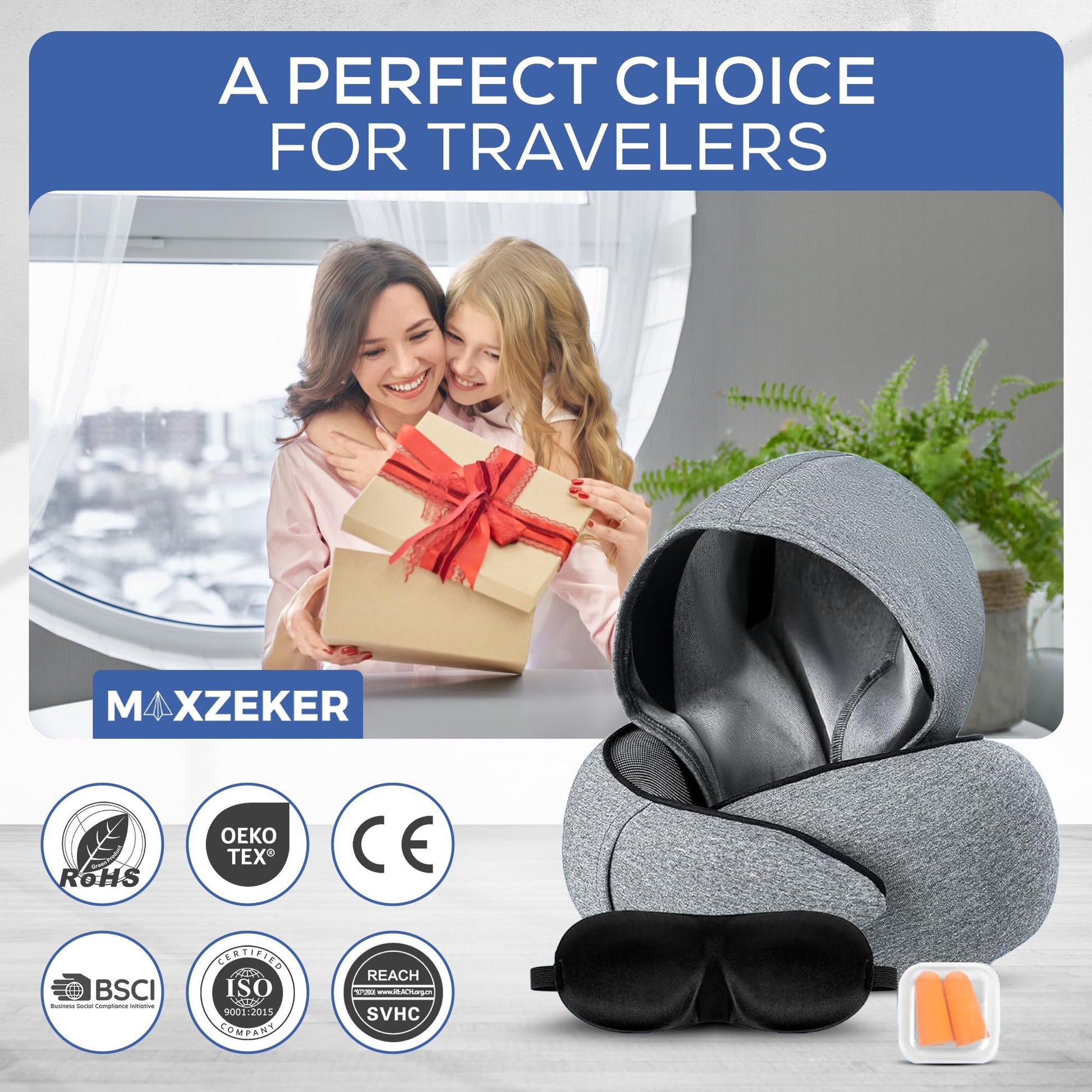 - Unmatched travel Comfort - Patent Pending: Say goodbye to neck pain and discomfort with Maxzeker’s travel neck pillow, designed for maximum support during long journeys. Whether you are on a plane, train, or car, our airplane pillow delivers ergonomic neck support for traveling, ensuring you arrive refreshed and ready for adventure. It is the best flying neck pillow for those who value comfort.