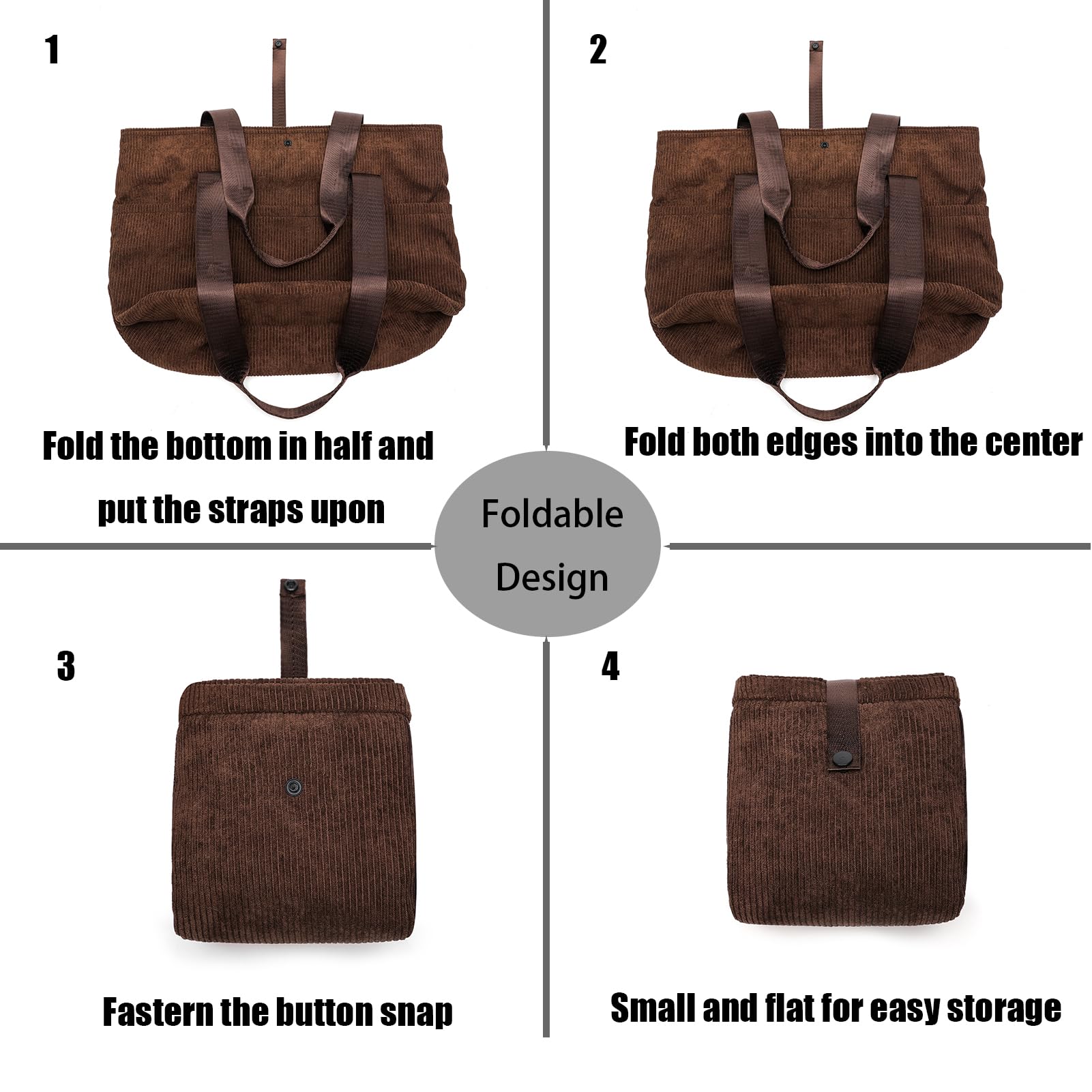 - Corduroy Tote Bag for Travel:This foldable tote bag for women is crafted from Corduroy, which is packable, and ultra-lightweight. It folds flat into your suitcase, making it the perfect women's travel tote bag for airplane use or as a daily bag on the go.