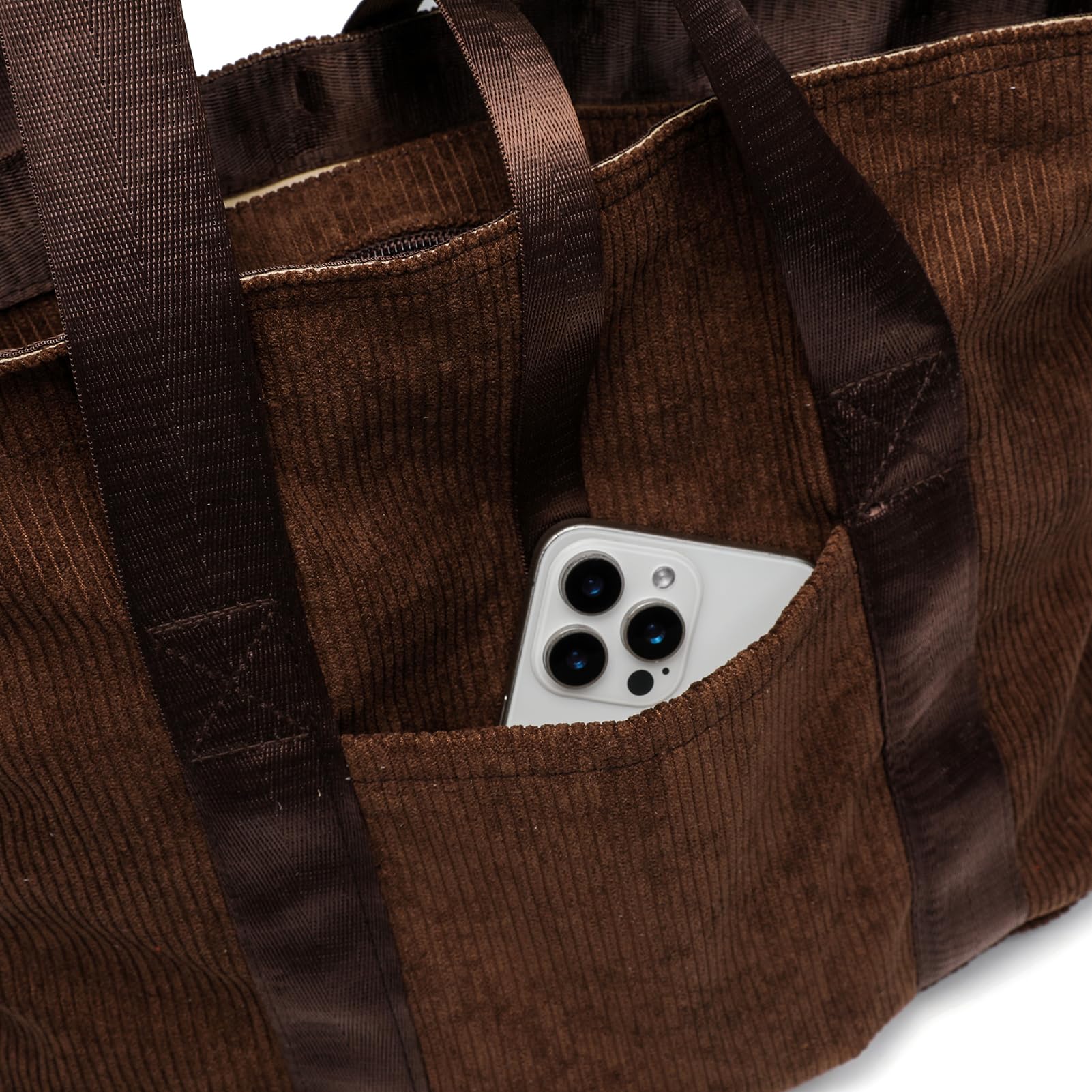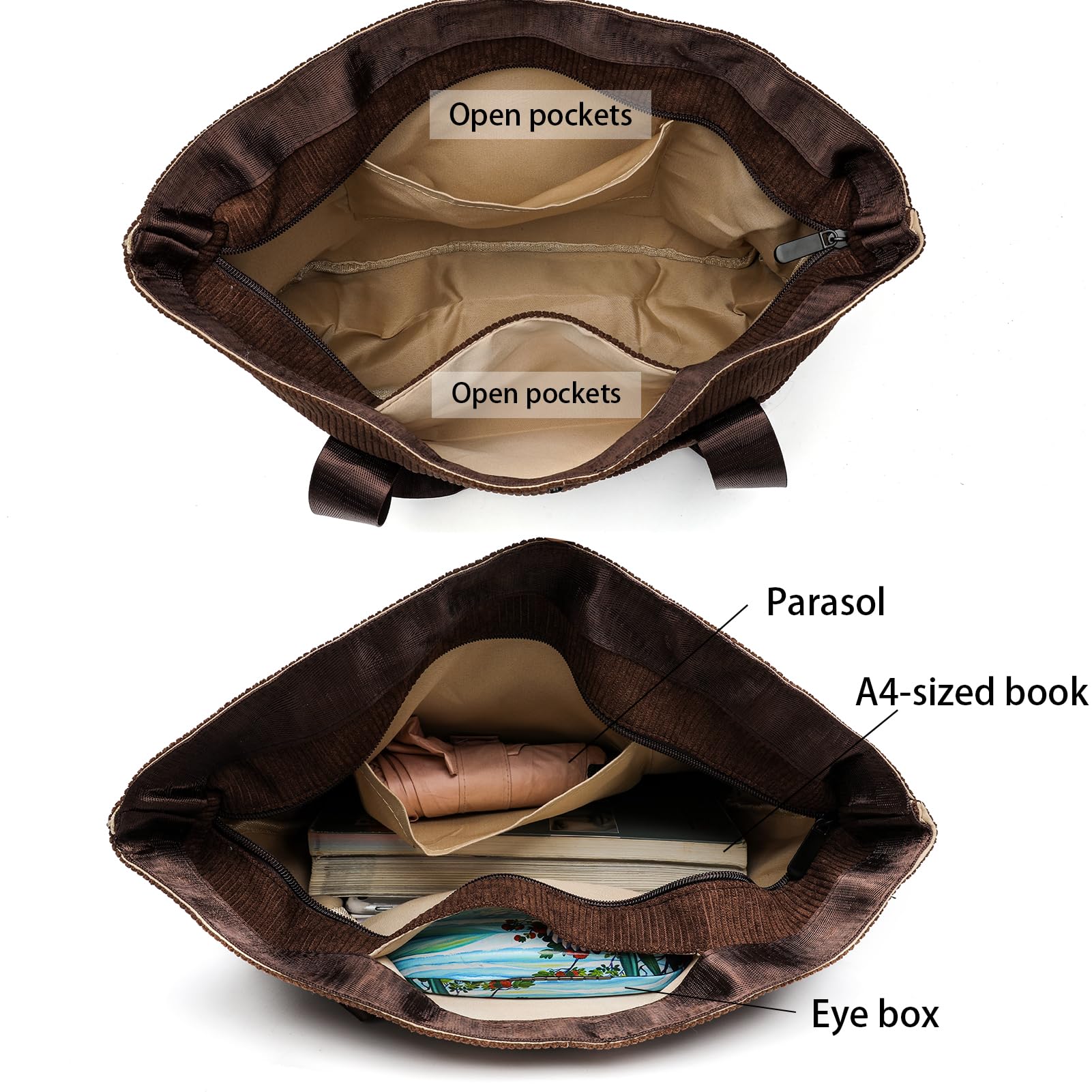 mcuvaec Corduroy Tote Bag for Women, Foldable Tote Bag With Zipper, Large Shoulder Bag, Purses and Handbags for Work Travel(Corduroy bag-Brown)