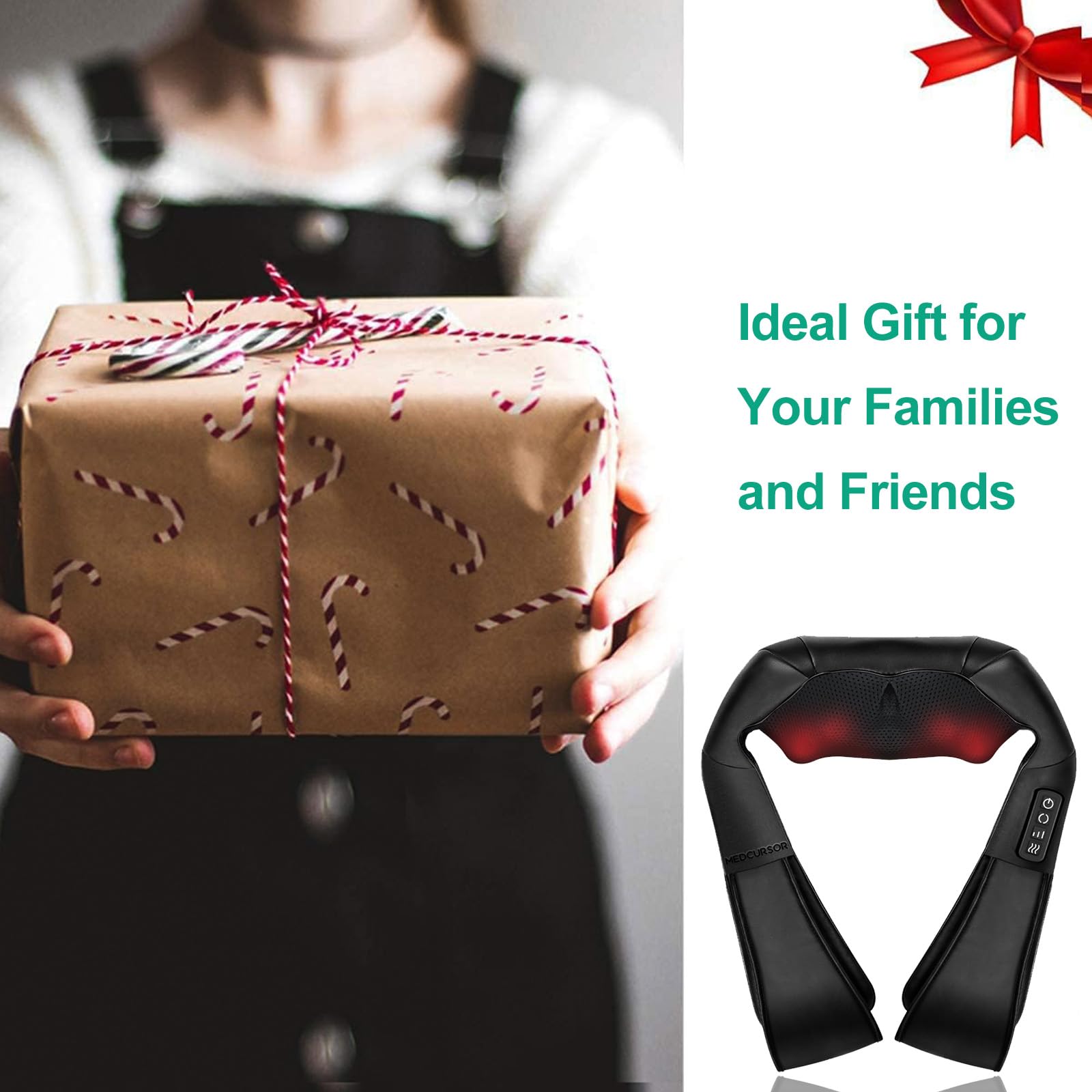 Medcursor Neck Massager, Portable Electric Neck and Back Massager with Heat, Deep Tissue 3D Kneading Pillow for Muscle Pain Relief, Ideal Father’s Day Gift, Not Cordless