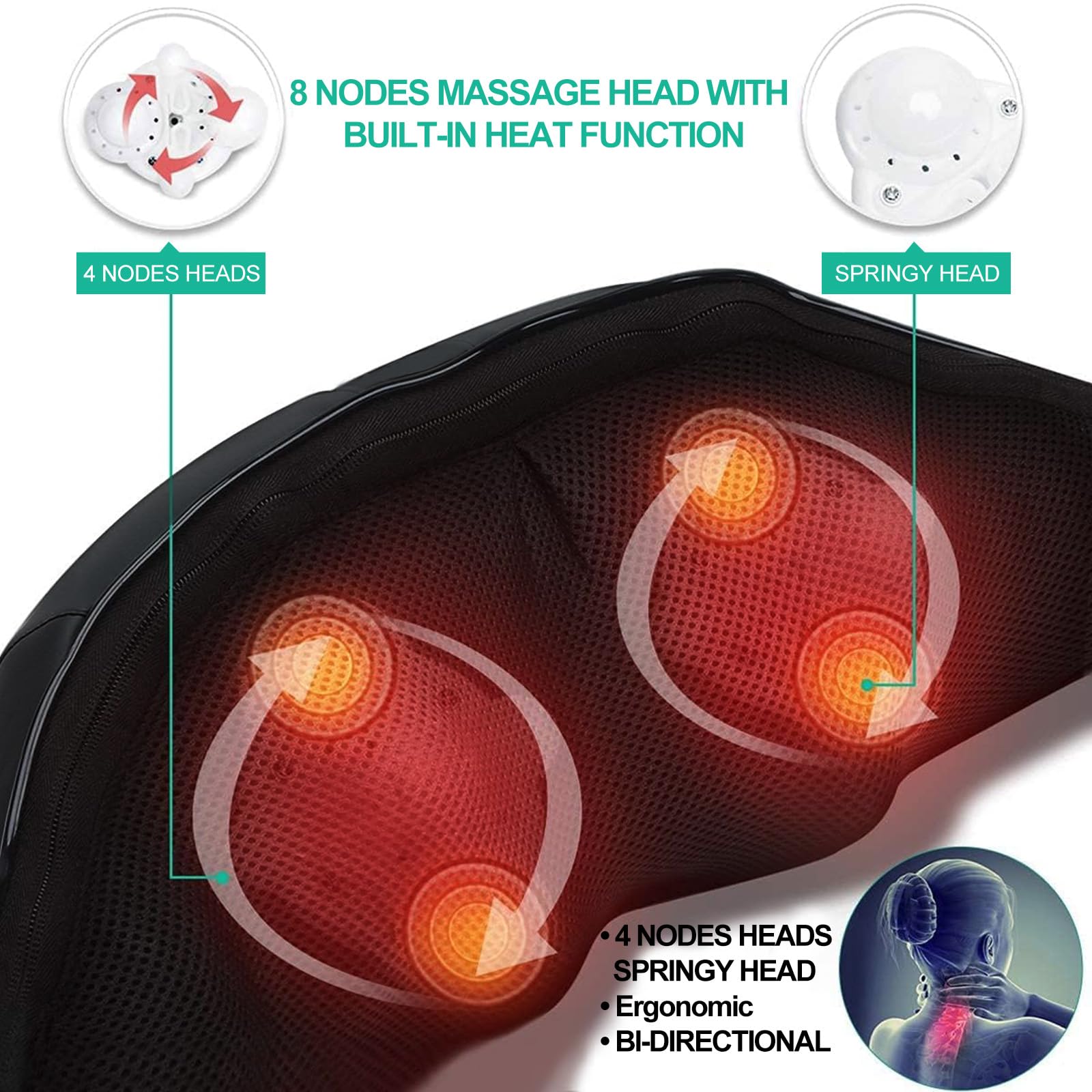 - Alleviating Muscle Sore & Acute Pains: With 8 Deep-Shiatsu Kneading Massage Nodes, our neck massager can help alleviate muscle soreness, ease neck stiffness, eliminate constant fatigue, and relax after a long day of work