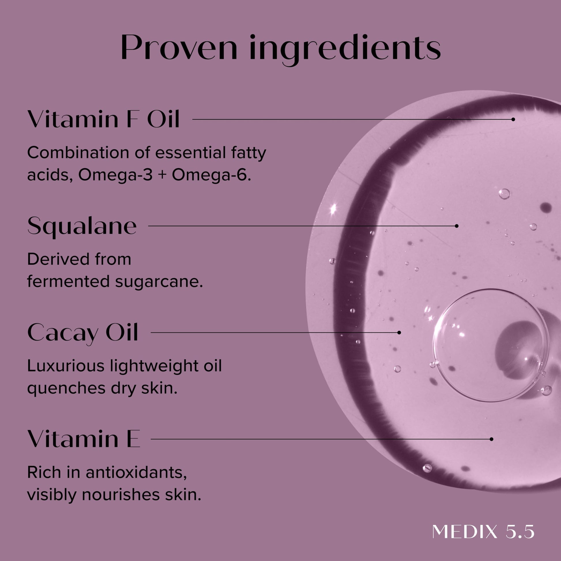 - HOW TO USE – Simply add Medix 5.5 concentrated Vitamin F booster to your favorite body moisturizer cream, body oil, face cream, after shave, or facial serum within your palm and rub hands together to combine. Adjust ratio as desired. Apply onto cleansed skin or hair focusing on problem areas until fully absorbed. Can be used morning or night. For best results use 1-2 times daily.