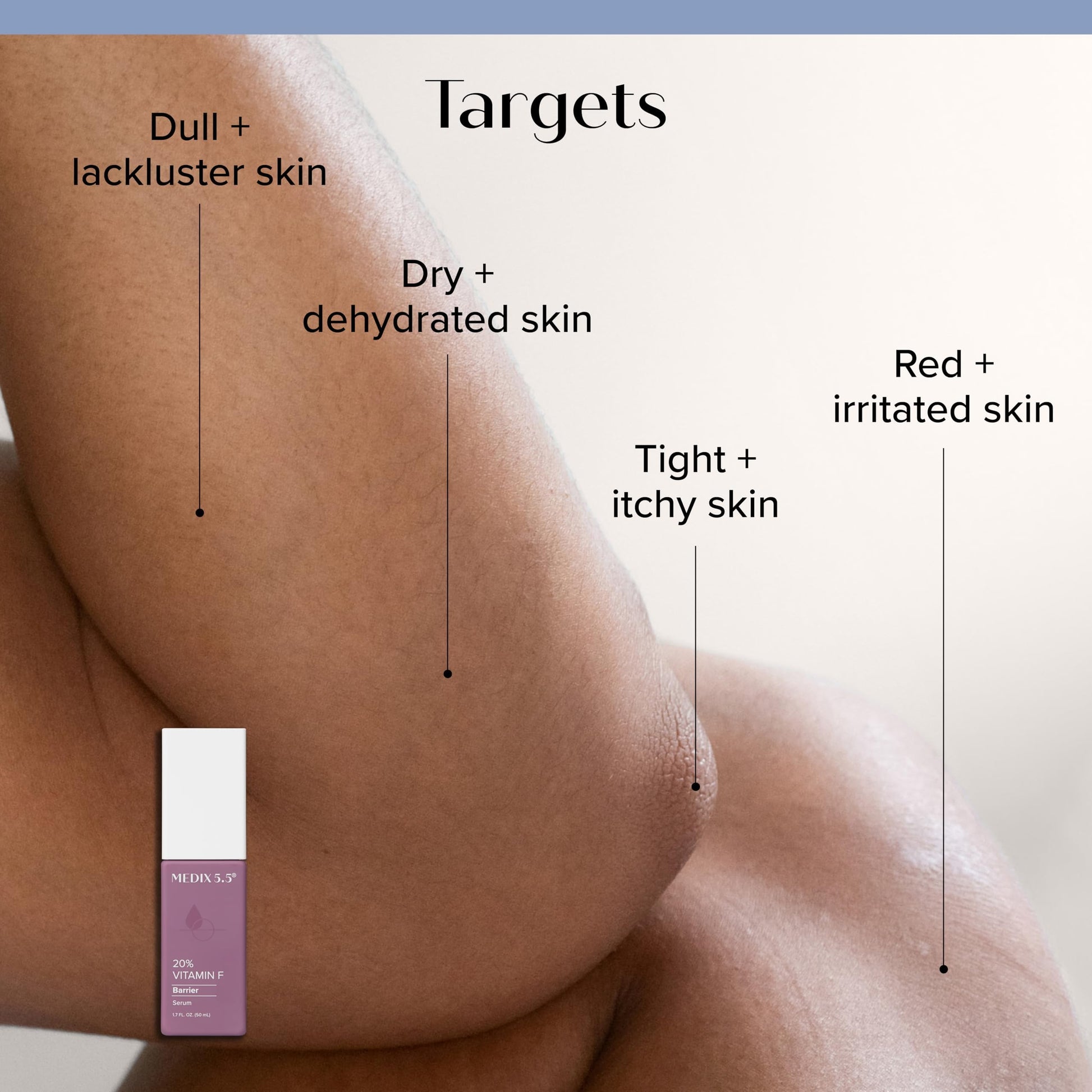 - MOISTURE BOMB – A rich moisture bomb of Vitamin F replenishes tight dry skin, helps protect the skin from environmental stressors that cause premature aging, and supports a healthy skin barrier. Continued use of Vitamin F in your daily skin care routine will help visibly diminish the appearance of wrinkles, redness of skin, flakey dry skin, & fine lines by promoting healthy skin that looks & feels hydrated.