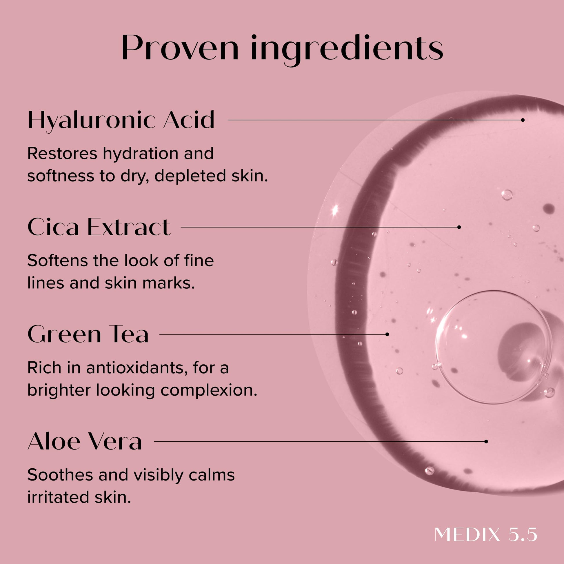 - HYALURONIC ACID - Hyaluronic Acid is a naturally occurring substance found in our skin that helps to keep it hydrated + plump. As we age, the amount of Hyaluronic Acid in our skin decreases, leading to a loss of firmness + elasticity. Hyaluronic Acid is a humectant, which means it draws water to the skin + helps to keep skin hydrated to prevent dryness + flakiness. Hyaluronic Acid can also help to improve skin texture and tone, giving you a more radiant & youthful complexion.